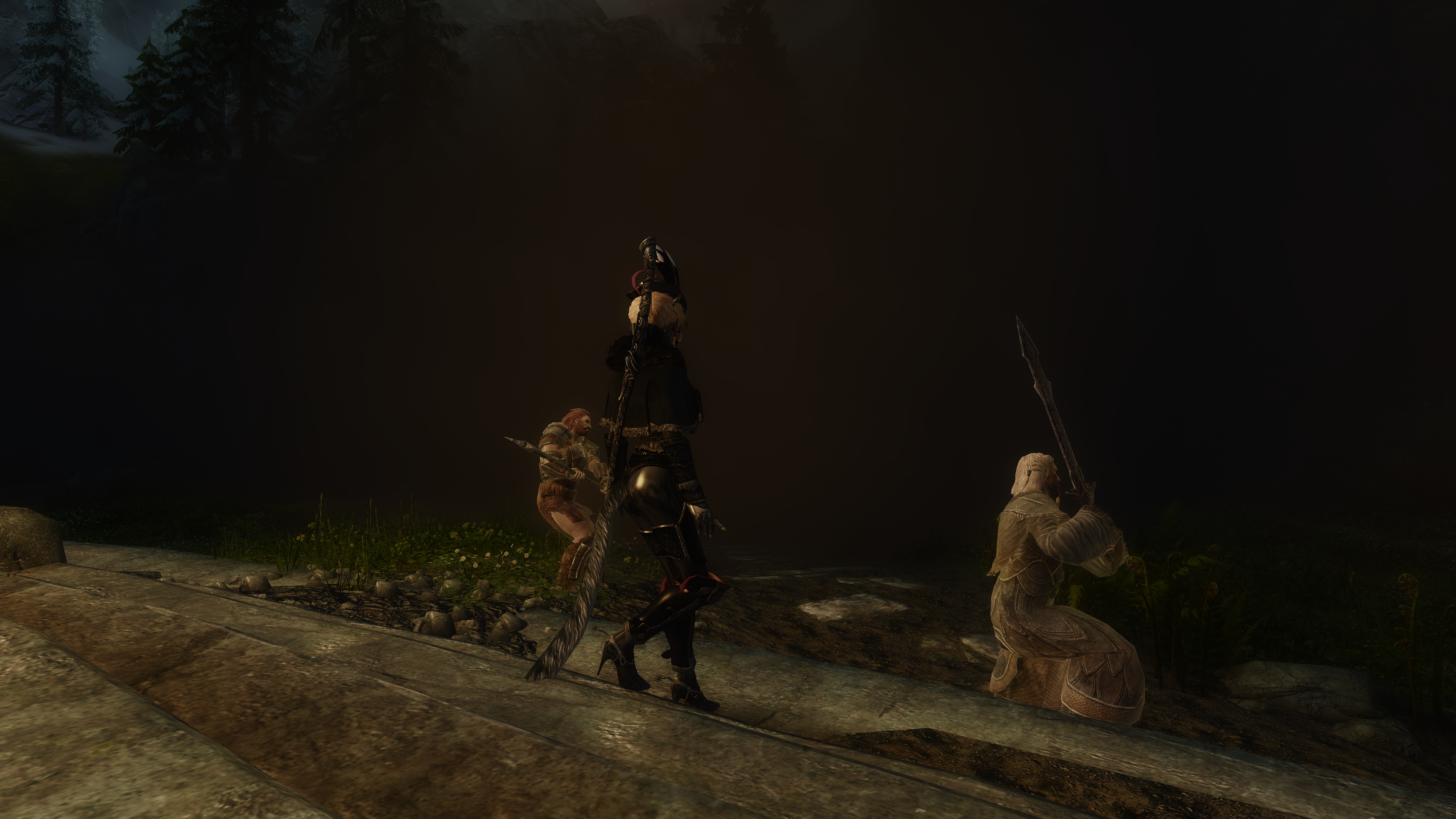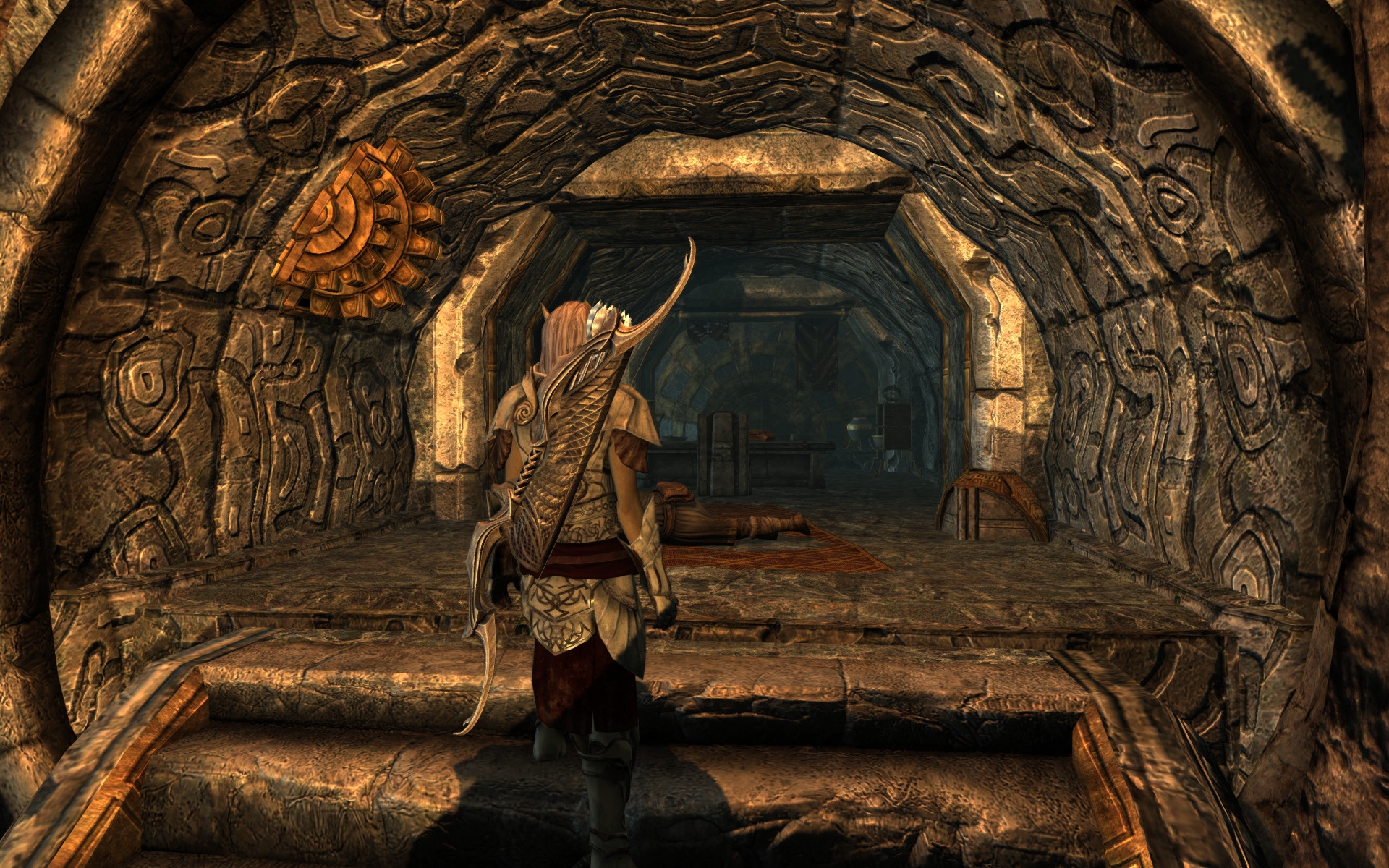 Данмерка ебётся с аргонианином-наркоманом. Гомонорды, собственно, гомонорды. Всё на своих местах. Впрочем гомонордский подвал довольно интересный - маленькая локация без квестов, но со своей зловещей тайной. Что за двемерская (или не их) хуйня свела гомонорда с ума, что он уехал от своего ёбыря в Солитьюде на Солстхейм её искать. Такие вот атмосферные моменты это то, в чём беседка всегда была хороша. Вот бы они ещё квесты и сюжетки так хорошо писали.