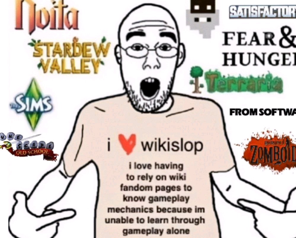 >>10091379 А, точно, он. Но это все равно катастрофически близко к определению "бесездовысеры". Ну и почему импотентную хуету всегда тянет на сбор мусора в пустом опенворлде? Почему это самый ходовой жанр у тех, кто всем сердцем и душой ненавидит видеоигры? Походу эта формула, этот "геймплей луп" - это обратная сторона нормального геймдизайна, сделанная для вот таких людей. Лабораторно выверенная формула специально для петровичей. Типа как Нинтендогс для девочек, а Вии Спортс для нормисов, так и Калауты/Калримы - для тех, у кого уже хуй не стоит: ни геймплея, ни сюжета - ходи да собирай мусор, больше нихуя не нужно.