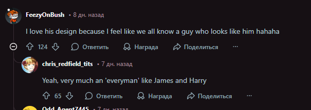 В сх2 ну допустим условно интересной можно считать историю джеймса/марии - типа от кого письма итд. Мне она не была интересна, но допустим. Все же побочные персонажи там выглядят также как сейчас повесточный негр или гей - добавлены шобы была ну в сх1 же было, у нас тоже должно быть! В остальных играх, те которые помню а это только даунпур - то же самое. Какие то левые персонажи на которых пох и которые выглядят лишними.