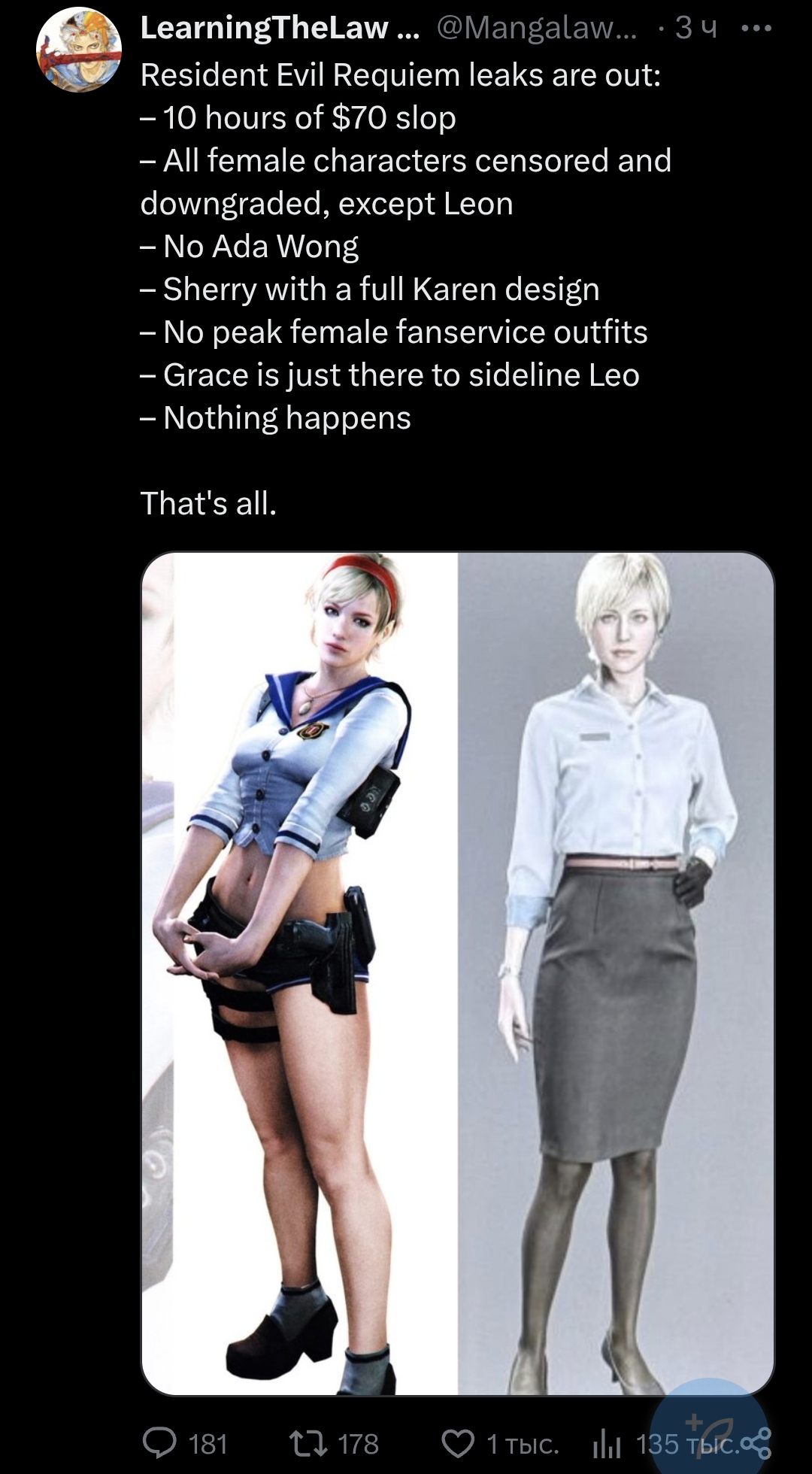 >>10120040 От грейс никто ничего и не ожидал. Мне кажется изначально затея была вообще скрывать Леона и делать маркетинг чисто на грейс, чтоб в игре дать поиграть за неё десять процентов времени как в мгс2 со снейком, а потом дать леончика от тртьего лица и отвал башки нахуй резидент ивл 4R-2. Но шитшторм заставил раскрыть карты раньше времени. Про нозинг хаппенс кекнул, в каждой части нозинг хаппенс, мне кажется даже если в конце девятки всю землю нахуй нюкнут, десятка как ни в чем не бывало начнется с того, что джилл расследует пропажу детей в японской деревне.
