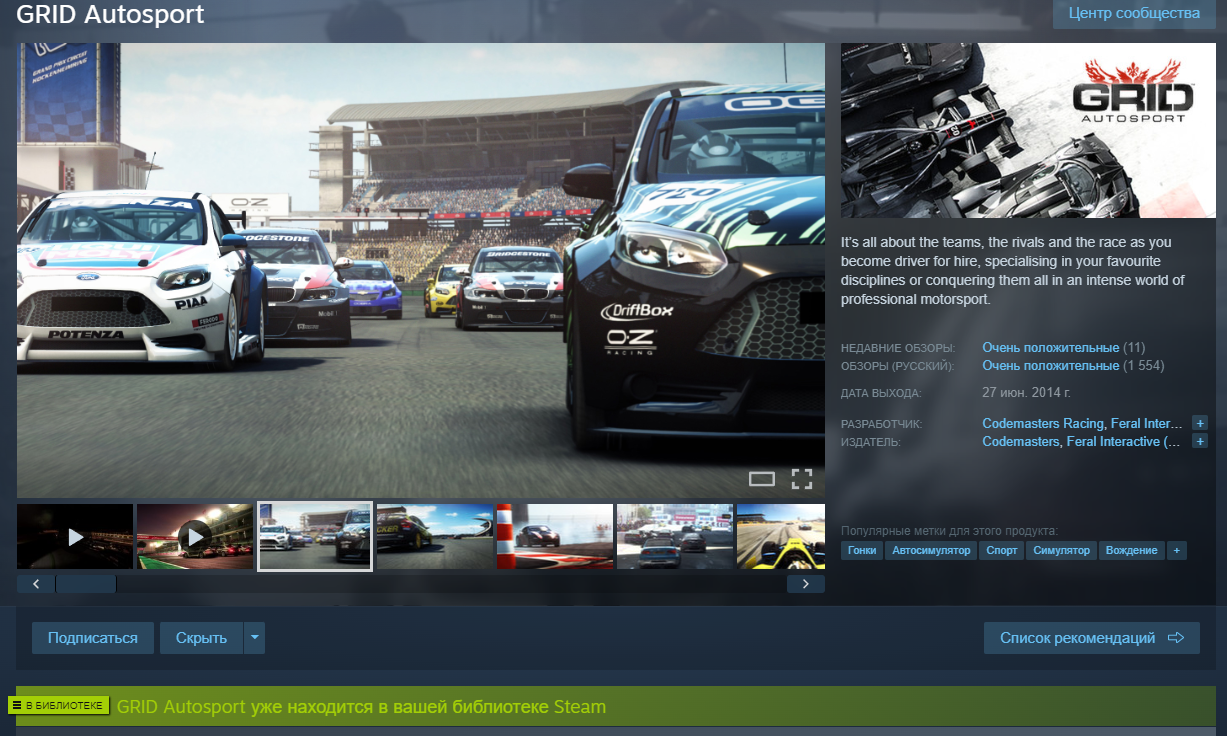 А теперь минусы. Абсолютно ублюдская система прокачки авто — чтобы прокачать машину на вменяемый уровень, нужно надрачивать на ней километраж, 30-60км для каждого требуемого транспорта, то есть перепроходить то, что уже прошёл еще 1-2 раза. И без этой прокачки нельзя пройти дальше по карьере. Ну это в режиме карьеры, в отдельном сюжетном режиме таким не нужно страдать. Ну и сама карьера очень уныло сделана, пока нормальные машины дадут уже 5 раз захочешь дропнуть игру. Для понимания насколько это плохо сделано, полностью карьеру прошли лишь 2.2% всех игроков. Во всём остальном всё сделано качественно, с dooshoy, жаль заслуженной славы не получила, я думаю это всё проклятье её релиза в 24.02.2022. 8/10. Грид автоспорт я не трогал, когда-нибудь может в другой жизни, либо от тотального ногамеза, да и она не ахти особо по видосам. Заебли уже эти круговые гонки. Итого: Grid 1>Grid Legends>Grid 2>умереть в агонии>Grid 2019. Фух как я насрал, не подавитесь.
