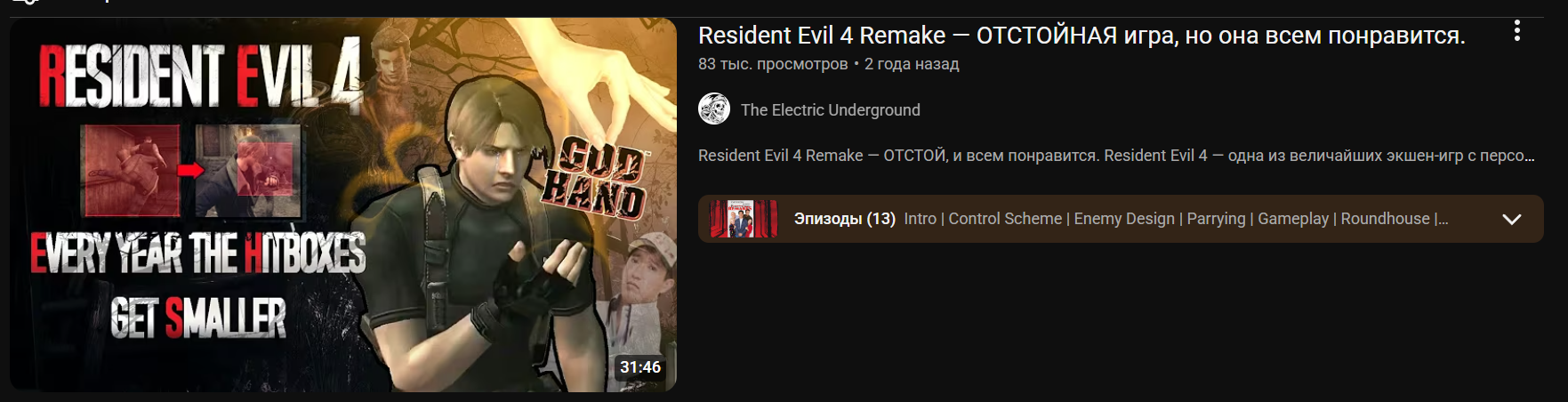 Начал играть в резик 4, который ремейк. До этого играл в двуху - понравилось так, что я ее аж два раза прошел, что со мной бывает крайне редко, за Леона и Клэр. От 4ки были завышенные ожидания, но чет пока по первым двум главам меня она больше душит кол-вом зомбаков. Посмотрим что дальше будет.