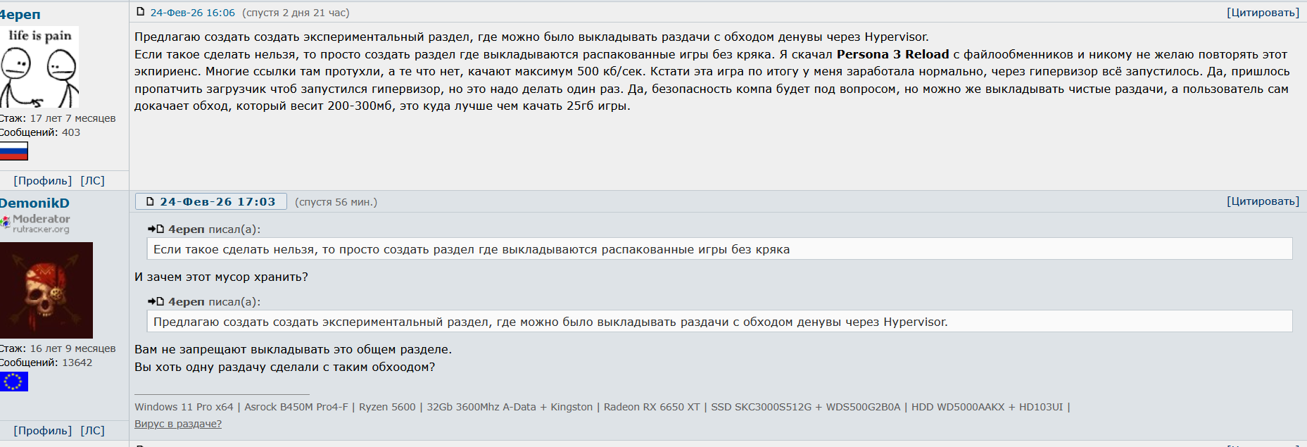 @monkey расскажи кратко, что там? эмпресс, крякоделка от кодекса, выдала прощальный манифест в пдф. вкратце: здоровье подкосилось, пираты неблагодарные уроды (воруют методы, ноют, не ценят труд), взломы теперь бессмысленны из-за вечных патчей и обновлений, денув ок (не жрёт перф, devs его снимают, лучше always-online), пиратство разрушает жизнь (вирусы, бардак на диске, одиночество без стима), покупайте легально — там всё красиво, облако, друзья, достижения. альтернативы: семейный доступ или подожди крэк. короче, агитка за стрим.