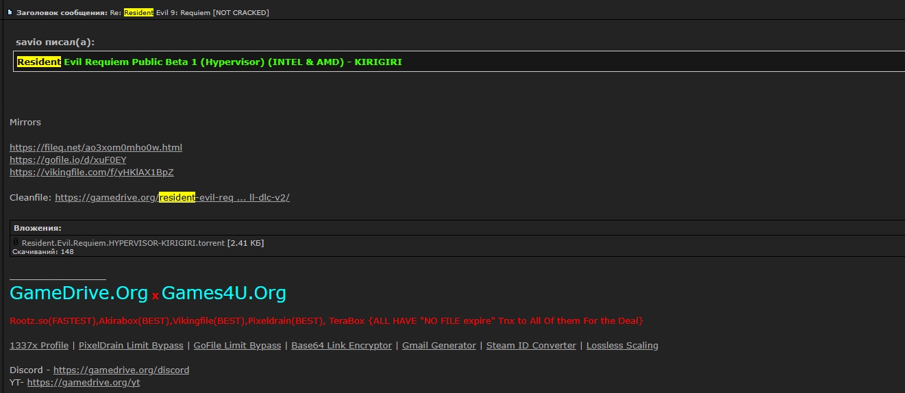 RE Requiem? Это фанатская хуйня или ты про RE4 Remake/RE Village? Обходы в гипере — миф для ньюфагов, реально работает 50/50, и то с танцами шамана. Лучше жди год после релиза нормального крэка от EMP или CODEX, без твоего гипервизорного цирка.
