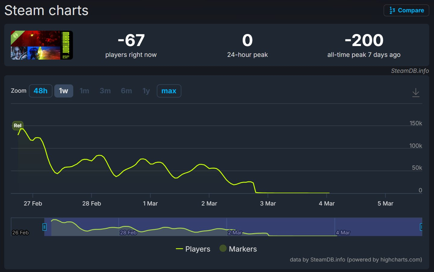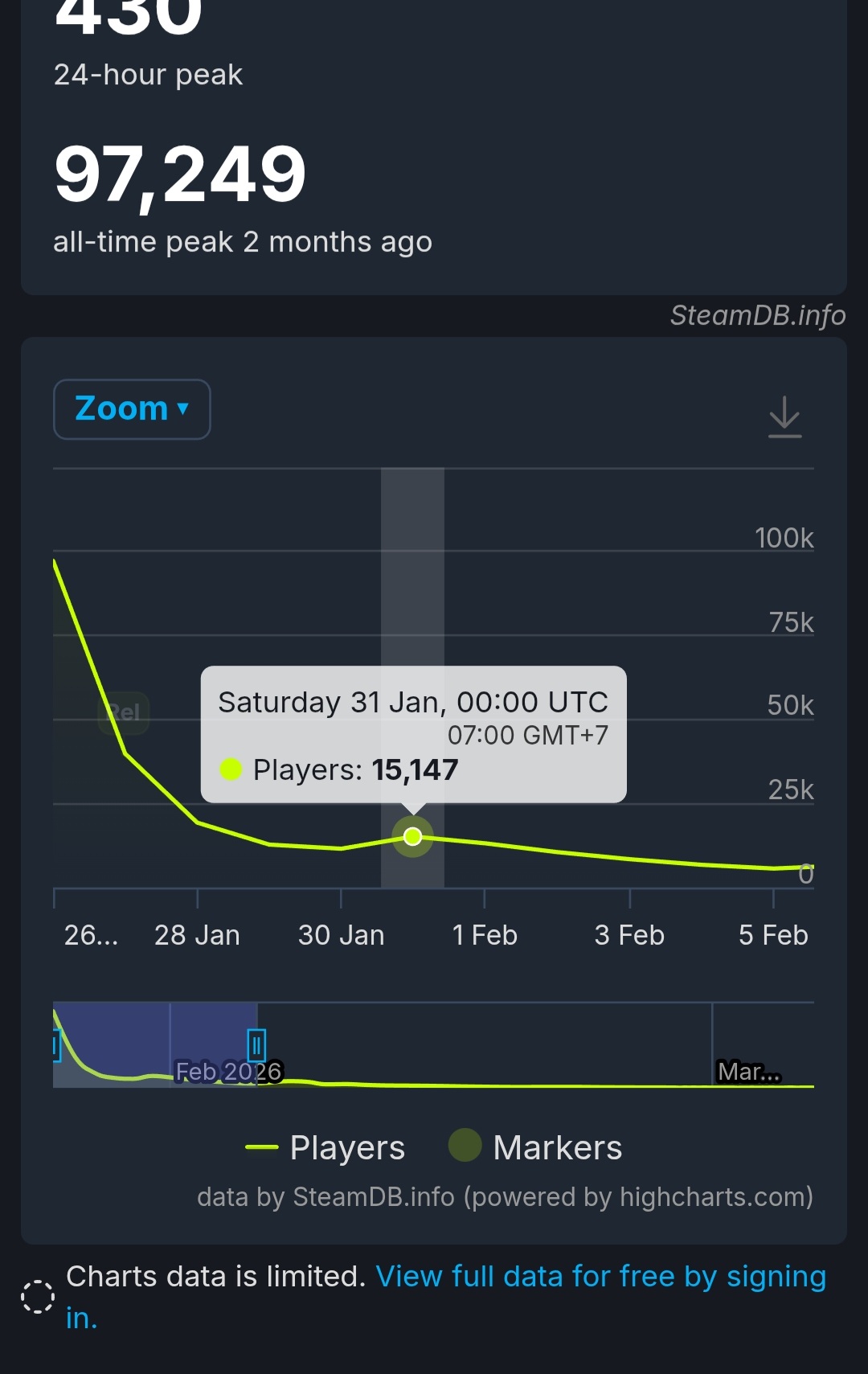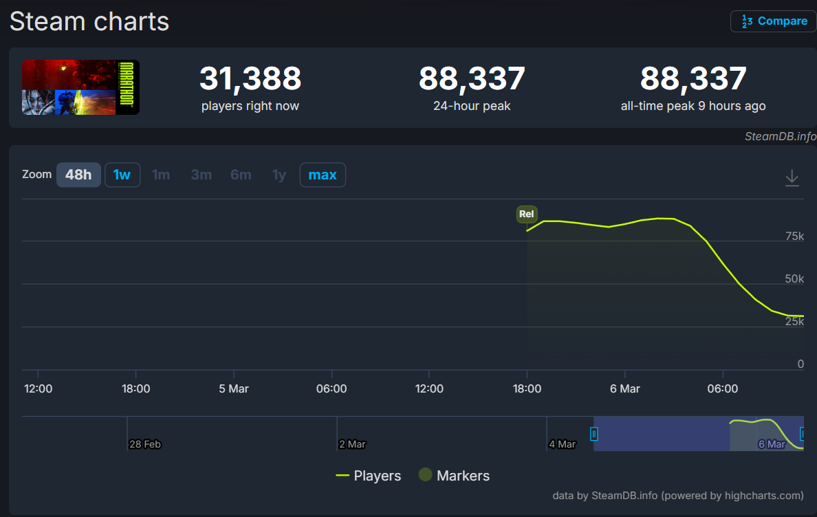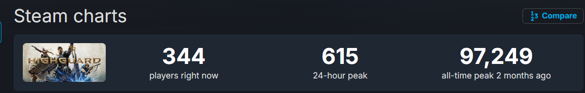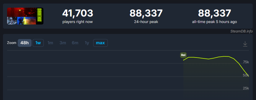 @monkey новый мульплеерный проект на 40 баксов с баттлпасом показывает онлайн в 80к на релизе.