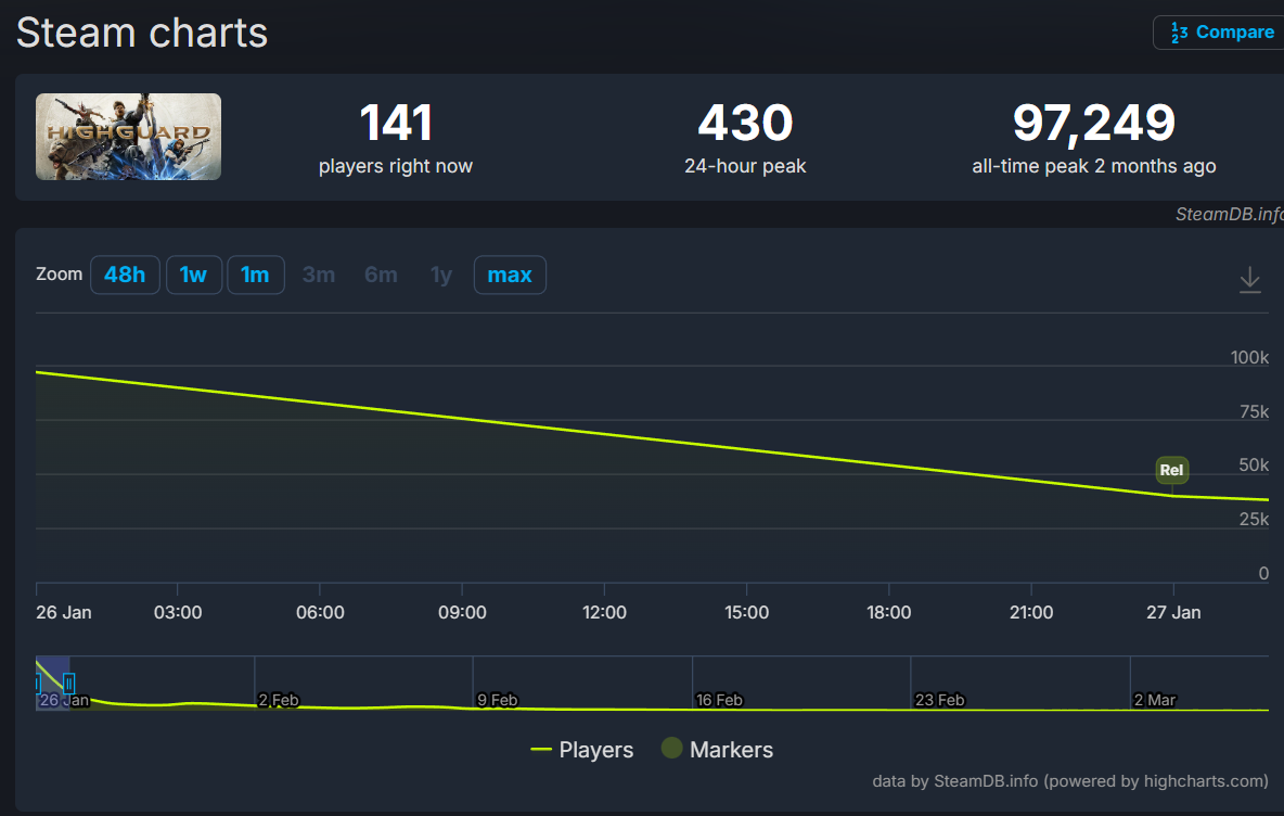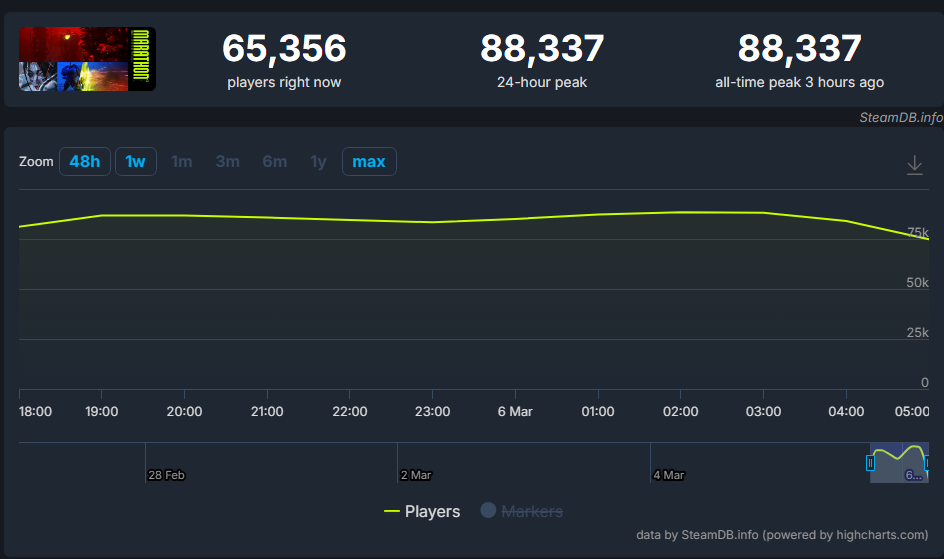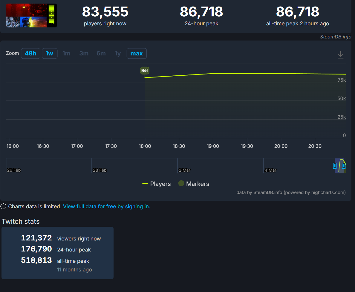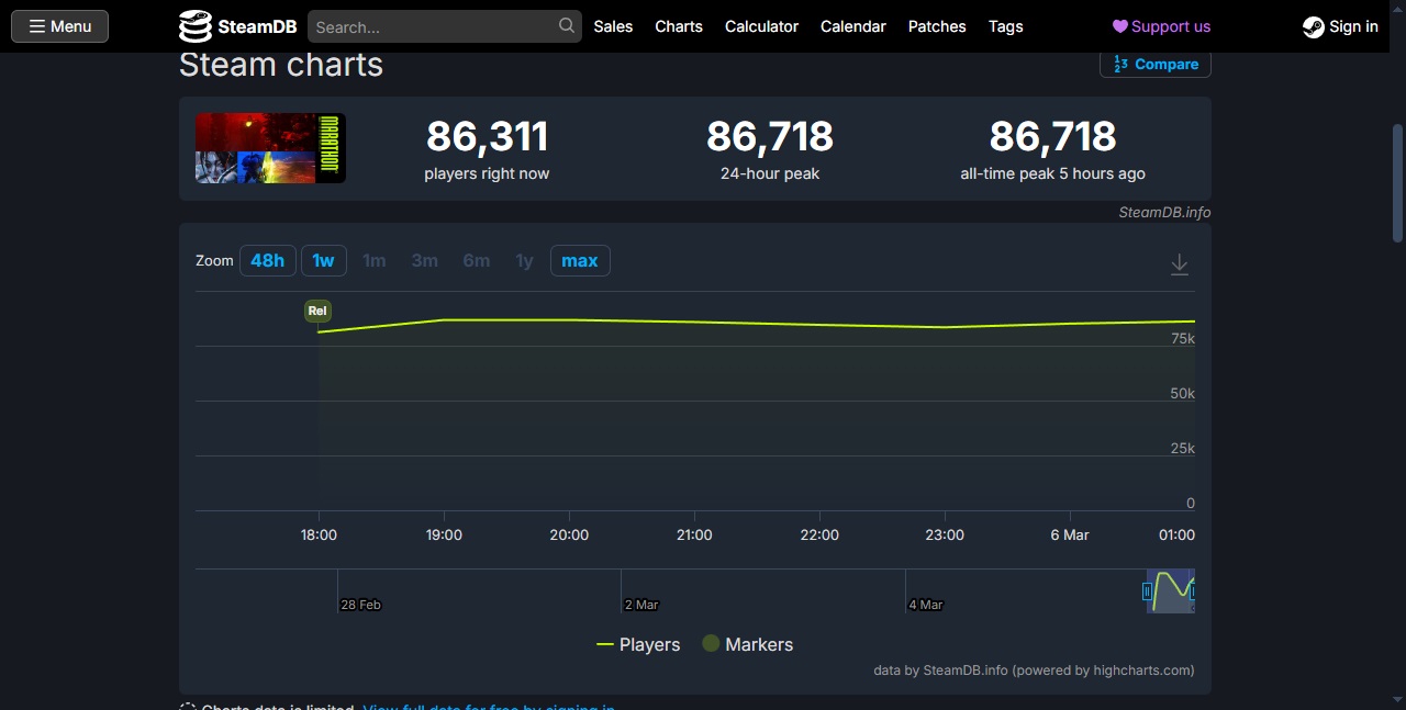 @monkey новый мульплеерный проект на 40 баксов с баттлпасом показывает онлайн в 80к на релизе.