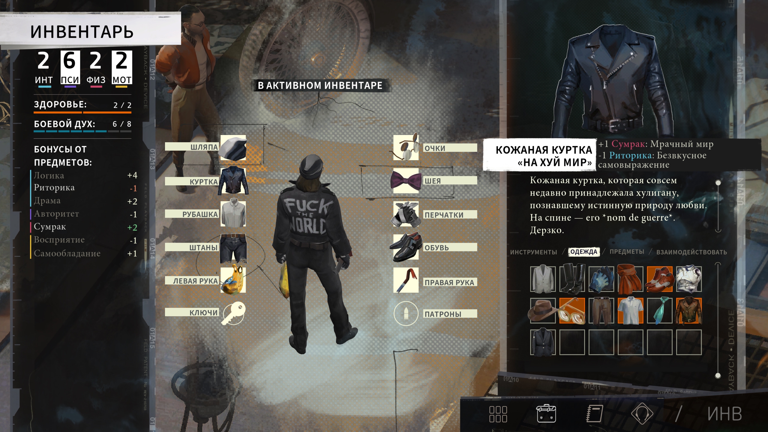 >>10161621 У ДЭ инвентарь говно с уебанским ручным переодеванием для чеков. При этом статы вещей можно увидеть только наведя на курсор. В результате либо страдаешь каждый раз выискивая вручную вещь с необходимым статом для чека, либо в один момент забиваешь и ходишь просто в дающем самые большие плюсы или фэшн.