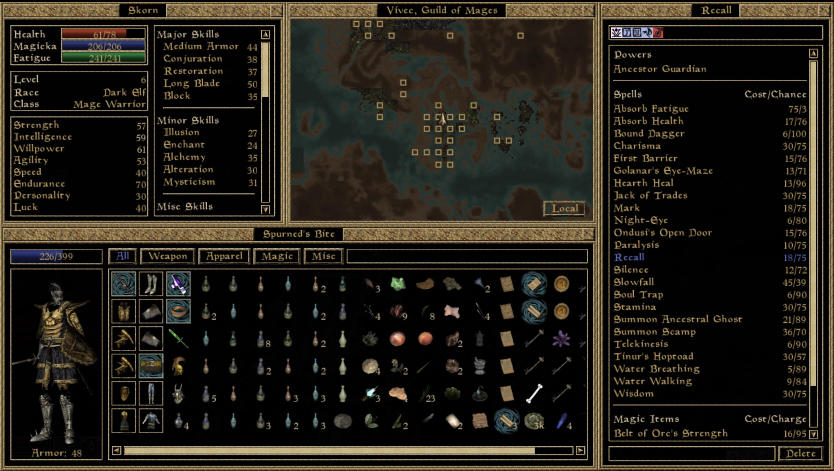 Люблю инентарь в моровине. Он мнговенный. Это охуенно. В обливионах-скайримах есть микрозадержка при заходе в сумку, тут просто инстант при нажатии пкм. Но с точки зрения гейминга он говно, особенно когда забивается. Зотя в целом все инвентари в тесах - кал, только системы фильтров для скайрима спасают.
