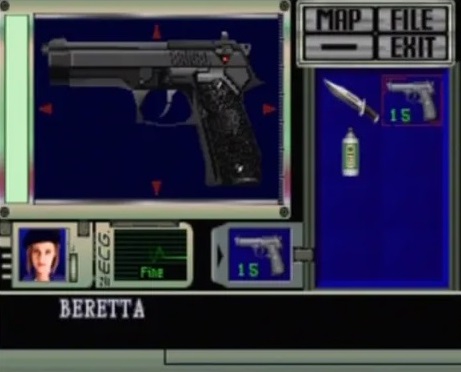 Многие незаслуженно проходят мимо инвентаря оригинального РЕзика. А тем не менее он был очень ламповым. Эти звуки, эта возможность вращать 3д рендеры предметов (потом во 2й и 3й части это урезали).... И вообще мне нравится интерфейс 90х годов, весь этот хром и яркие электронные цвета типа киберпанк.