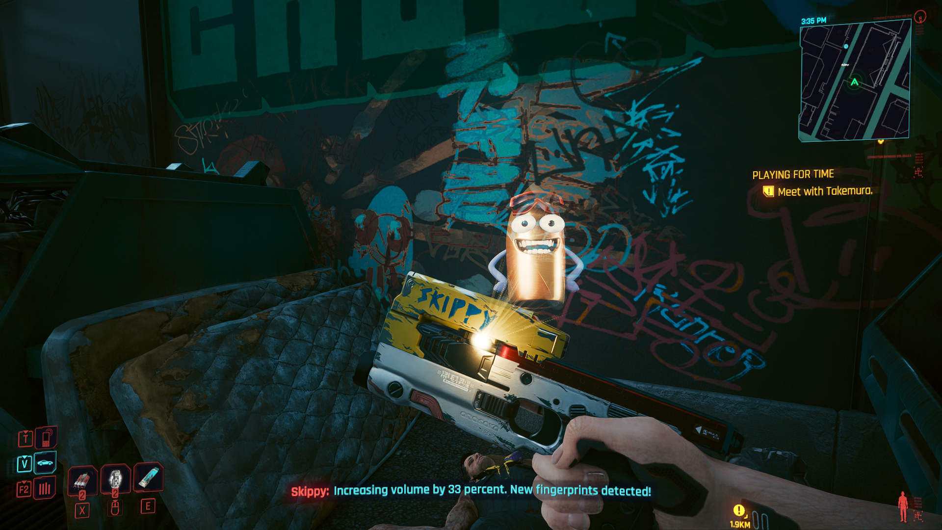 Сюда же куча мелких деталей, которые, не являясь чем-то невероятным в вакууме, идеально вписаны в контекст игры и лишь дополняют картину: звуки меню, загрузочные экраны в виде карты США, по которой перемещается главный герой, сцена перед началом каждой миссии, где ты стреляешь в цель и та разваливается на кусочки под звуки сирен, сейв рума, телевизор, с помощью которого прокачиваешься, персонажи, произносящие забавные фразы, когда между ними переключаешься "Dont make me say it again, im a cleaner", комната в клубе перед босс-файтами, обвешенная звукоизоляционными панелями, те же смеющиеся враги, упомянутые выше.