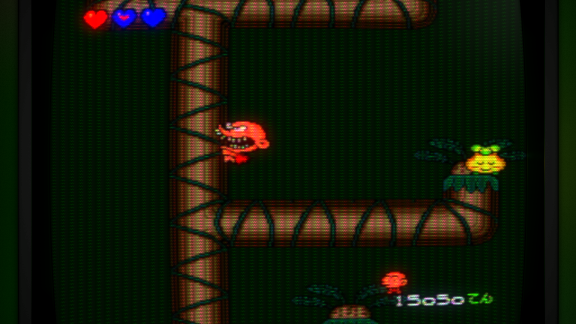 В то время как большинство платформеров использовало ноги, чтобы убить врага, Бонк использует для этого свою массивную голову. Он буквально всех фигачит головой, а ещё, если съесть мясо, то он начинает чернеть и наносить больше урона, имея неуязвимость к первой атаке, а если съесть второй кусок мяса, то он превращается в неудержимого негра(на 4 пикче, он аж позеленел), сминающего всё на своём пути.