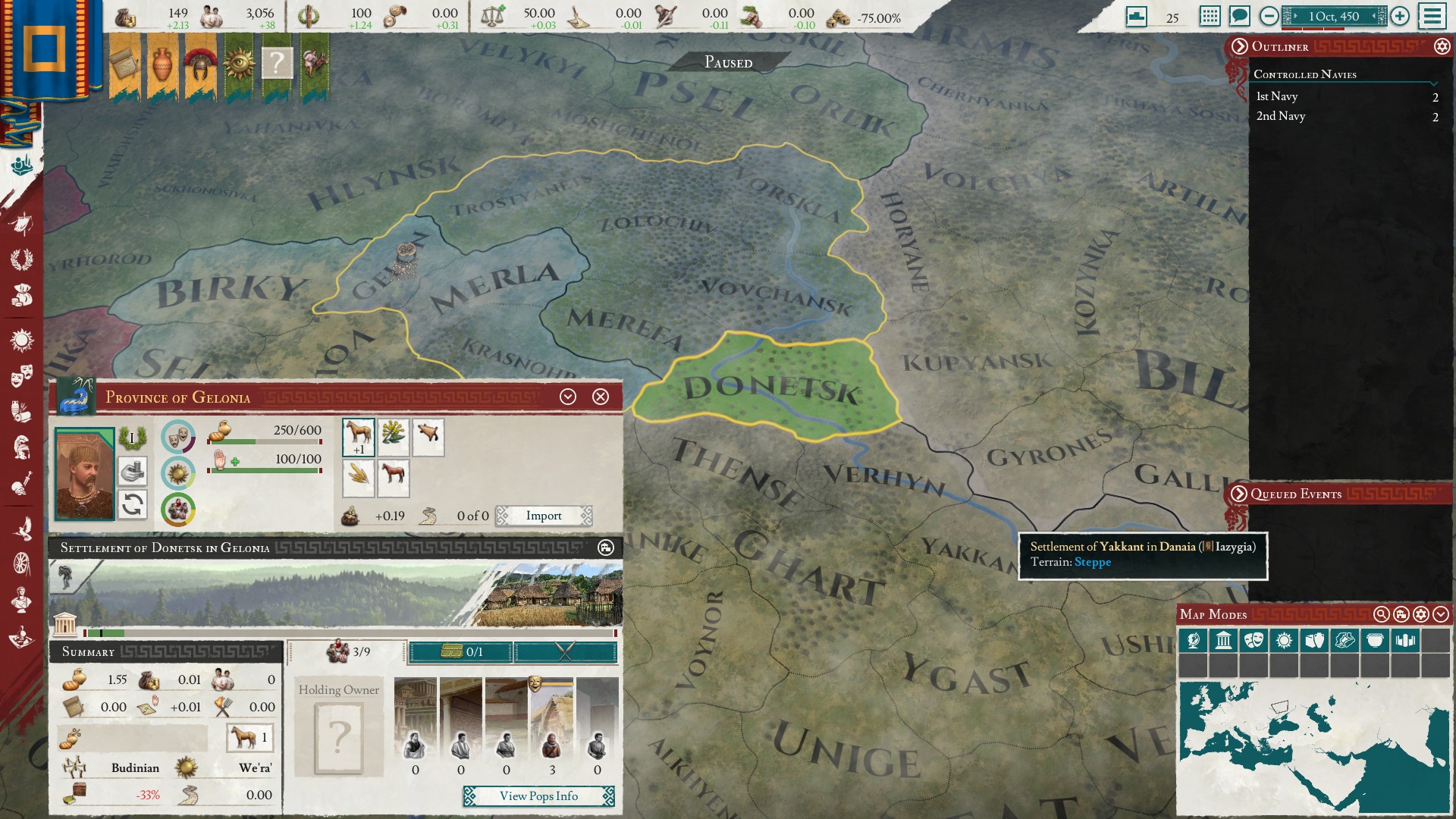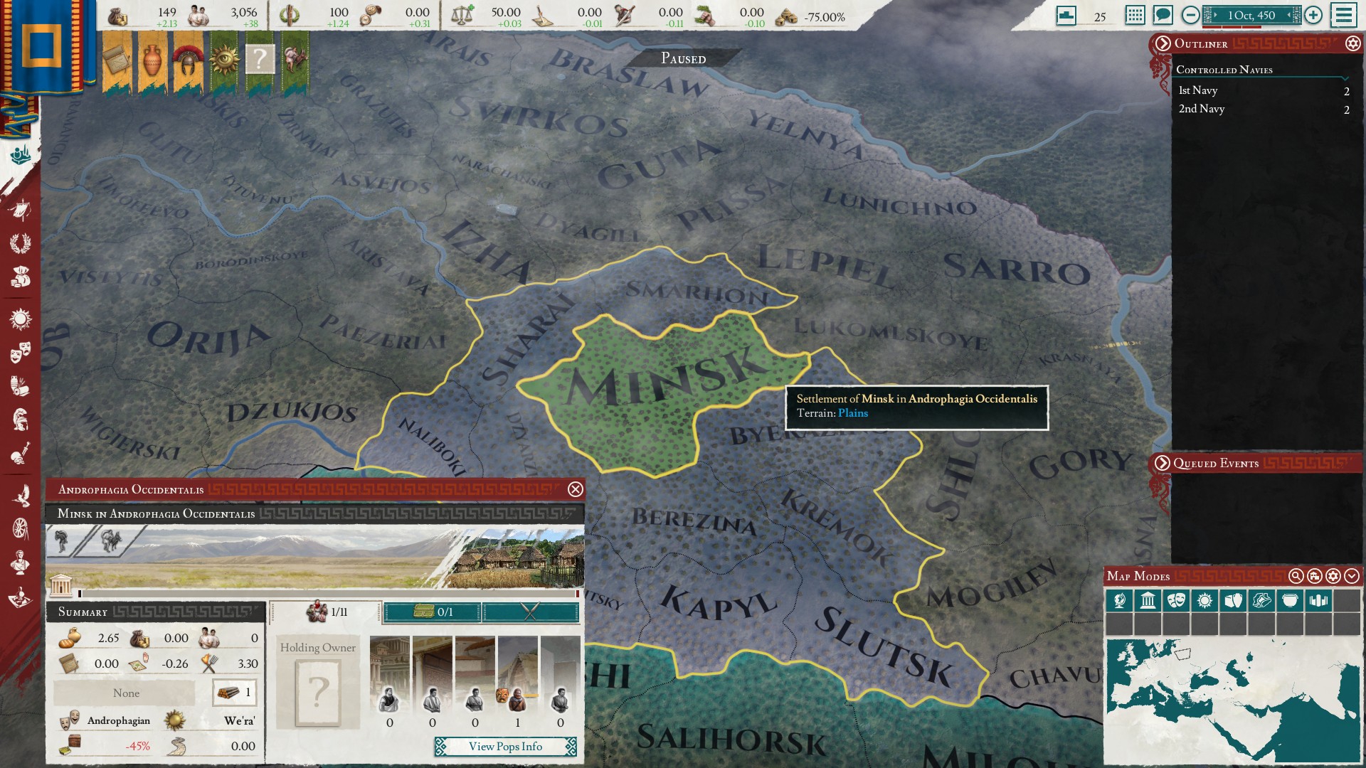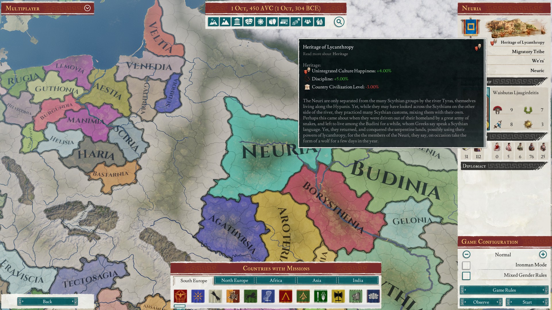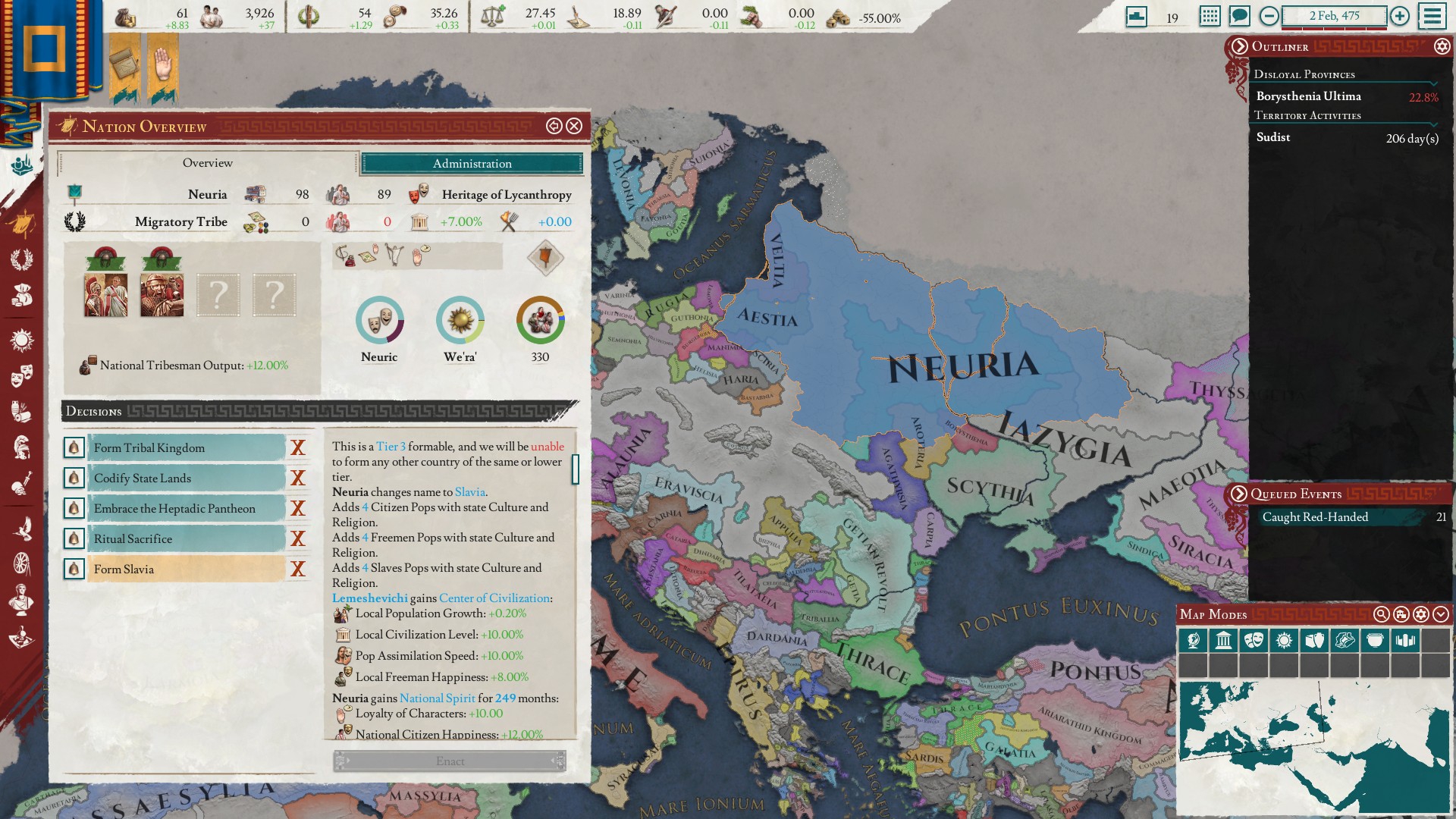 Формирую Славию в инвиктусе. Не люблю государства на формирование которого нужно тратить дохуя времени, а здесь как раз много неколонизированного пространства и нужно конвертировать население или давать права на заселение другим культурам. Ещё и -75 централизации со старта, это будет прям заёба грешная.