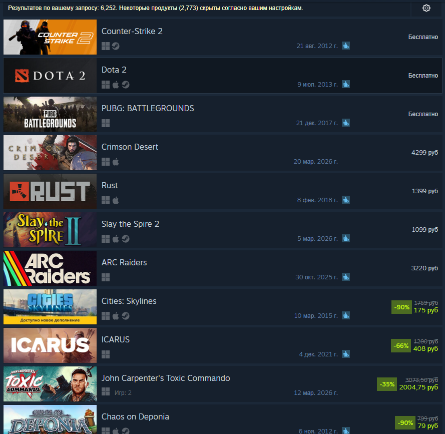 >>10171007 Ну дык на твоём скрине одна кросплатформа, я не особо понимаю чем ты тут перемогать пытаешься. На соснолях особо не поиграть ни в шутеры, ни в стратегии, ни в мобы.