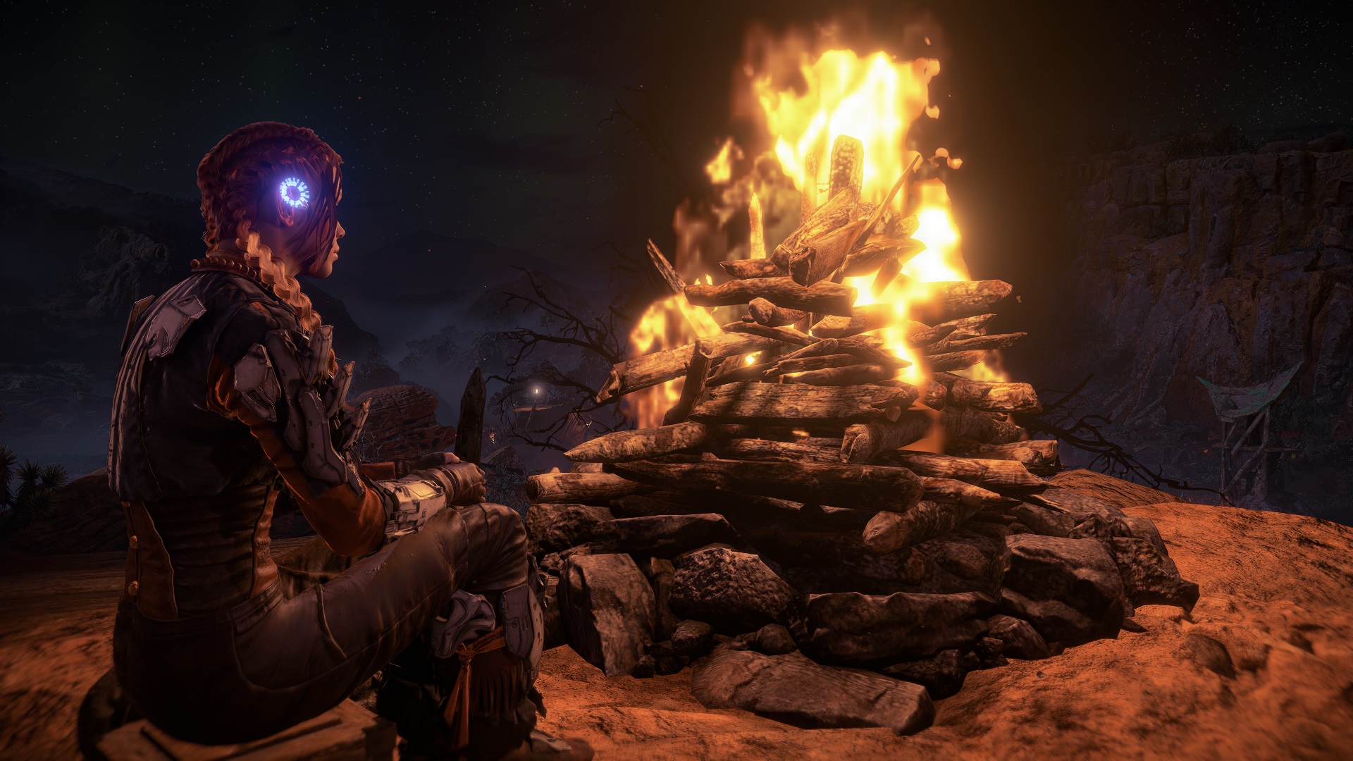 Сегодняшние приключения Элойки не сказать, чтобы были насыщенными, а скорее - медитативными. Исследовать руины не получилось из-за наростов, которые надо сковырнуть специальным оружием. А его нет. Зато расследовал нападение машин на рабочих, виновник был наказан пенделем и изгнан из поселения. Пошёл дальше по сюжету через ночные каньоны и пустоши, посидел у костра, а вскоре после этого игра почему-то перестала видеть геймпад. Перезапуск игры помог, но поскольку прошло уже 50 минут игрового времени, то решил, что на сегодня хватит. Впечатления - приятненько, очень приятненько. Но предстоит много изучать, эх...