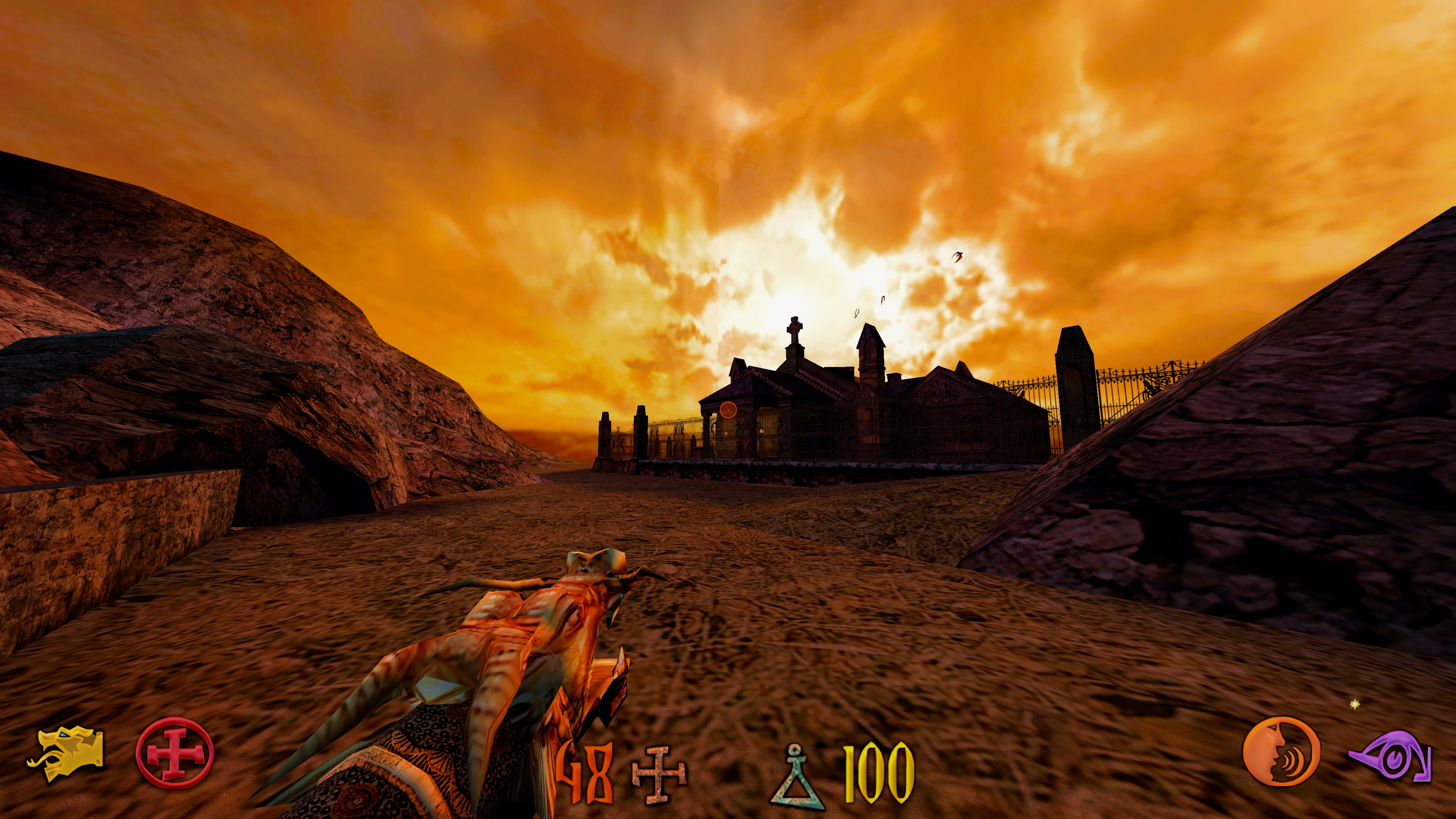 Сражаюсь с невыразимым хтоническим богохульным ужасом из трёх полигонов. Геймплей внезапно потный, враги далеко прыгают, метко плюются, попасть по ним не так уж просто, убивают быстро. Но атмосфера классная, особенно если графоманские записочки читать. Дх11 рендерер что-то подглючивает, буфер глубины неправильно берётся, в результате чего текстуры, спрайты и АО в некоторых комнатах переключаются туда-сюда, пришлось поставить вулкан, который чуть более базовый (тесселяции нет, например), зато работает без проблем. Автор дх11 рендера, видимо, обиделся, что его за донатную мокропиську в моде поудаляли со всяких моддб, сначала новые версии там перестал выкладывать, а потом вообще перестал допиливать.