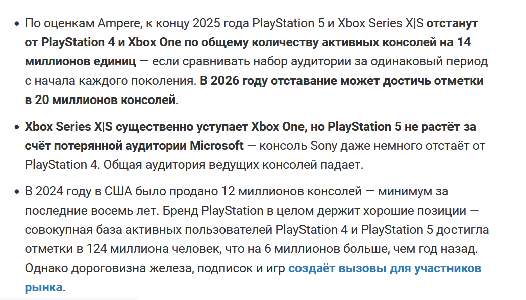 Я бы хотел приобрести PS6, но всё зависит от стратегии Sony, если они направят много ресурсов в создание синглов и будут привлекать больше сторонних разрабов на свою платформу, то тогда эта консоль будет иметь смысл и можно будет коллекционировать диски, лимитки и прочее. Этого всего не было в текущем поколении, поэтому PS5 я не стал покупать, недавно приобрёл switch 2 только, а для остального и так уже имеется ПК и steam. Сейчас очень непростая ситуация, тем более что на рынок выходит Valve со своей экосистемой (steam os, machine, steam deck). Задача Sony привлечь игрока в первую очередь большим числом игр собственного производства, затем форм-фактором, интерфейсом, физическими изданиями и созданием ощущения лучшего игрового пространства в гостиной сидя перед ТВ