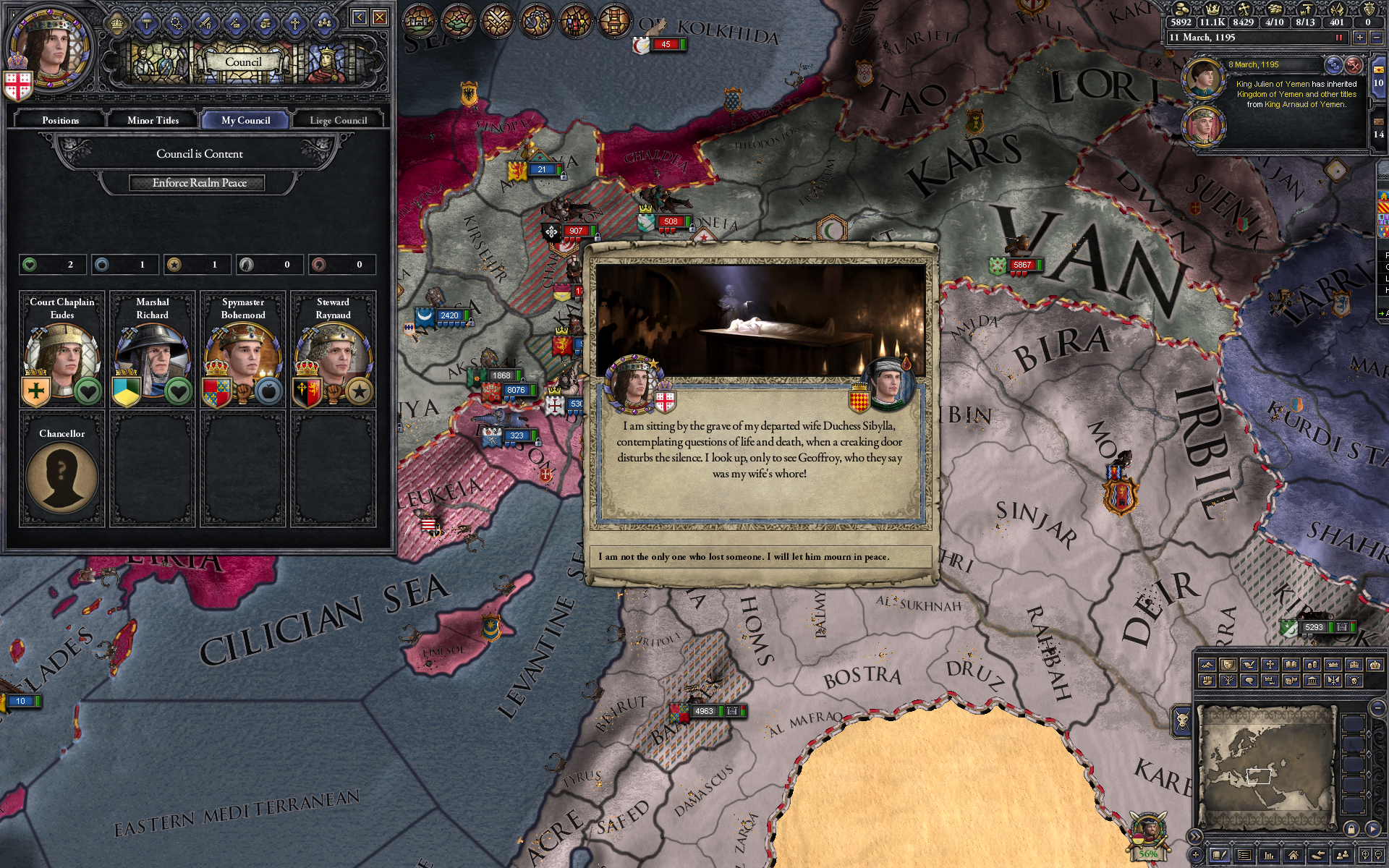 >>10174715 Ебашь, брат. У меня вот в CK2 померла жена, которая подозревалась в измене. Приходит такой ивент - получается её сношал мой брат, а теперь он пришёл, признался в этом и типа ок.