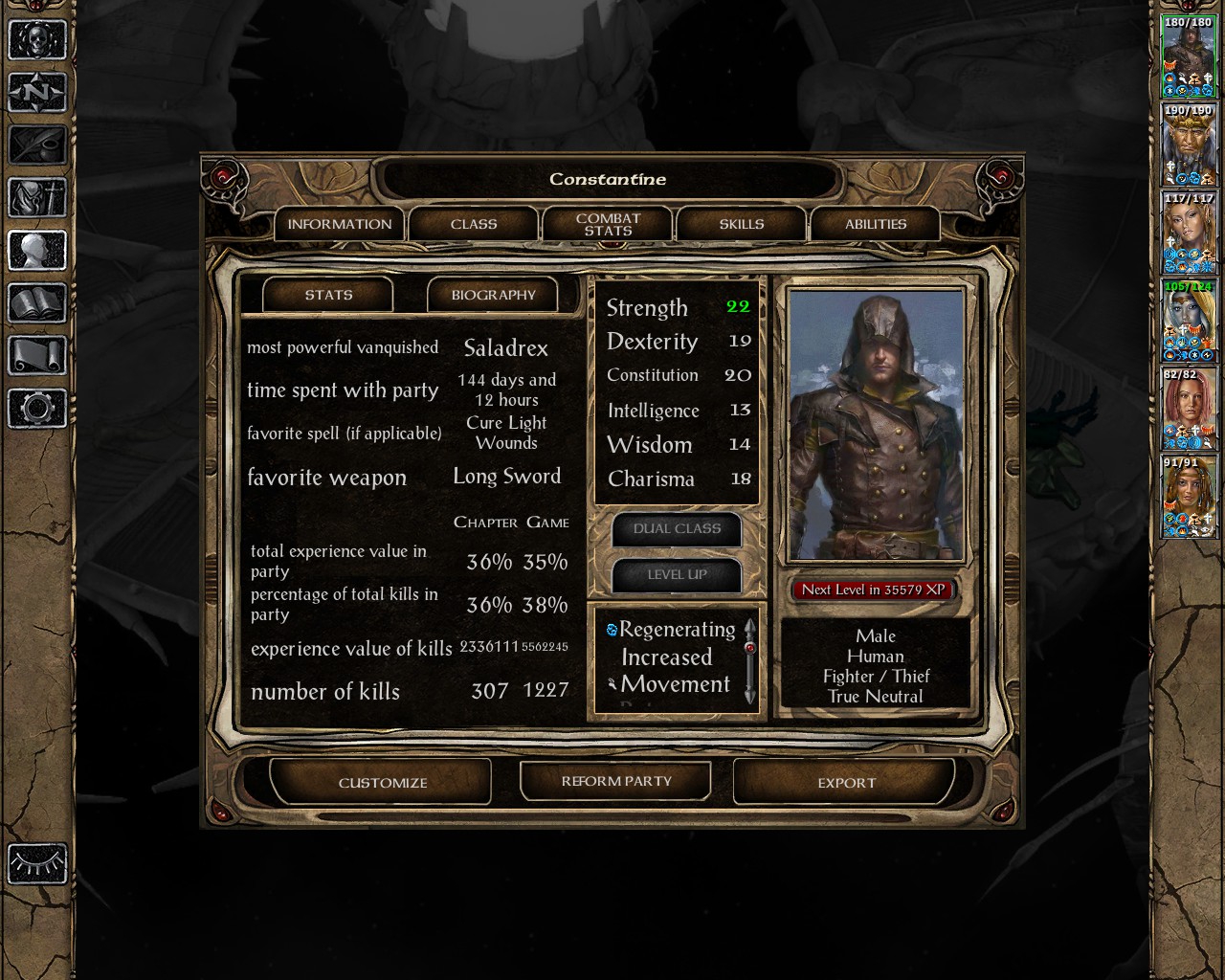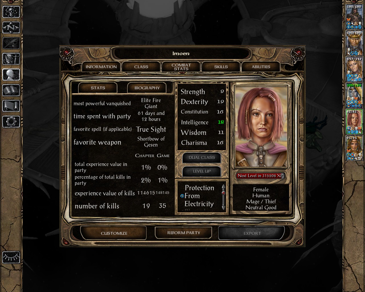 >>9790555 Ну слава богу что в бг2 не парашная 3ед система классов а есть (не)человеческий мультикласс и человеческий дуалкласс, поэтому рога/файтер или рога/визард станут прекрасным дополнением к любой партии, на это жирно намекают даже компаньоны - чистых рог среди них нет, только йошимо который НИПРИДАВАЛ и добавленная бимдогами ниггерша херсат, которую от кола в очко не спасают ни задранные статы ни вампирские абилки. Имоен, Налия - дуалклассы в визарда, лучший компаньон в игре Ян - вор/иллюзионист.