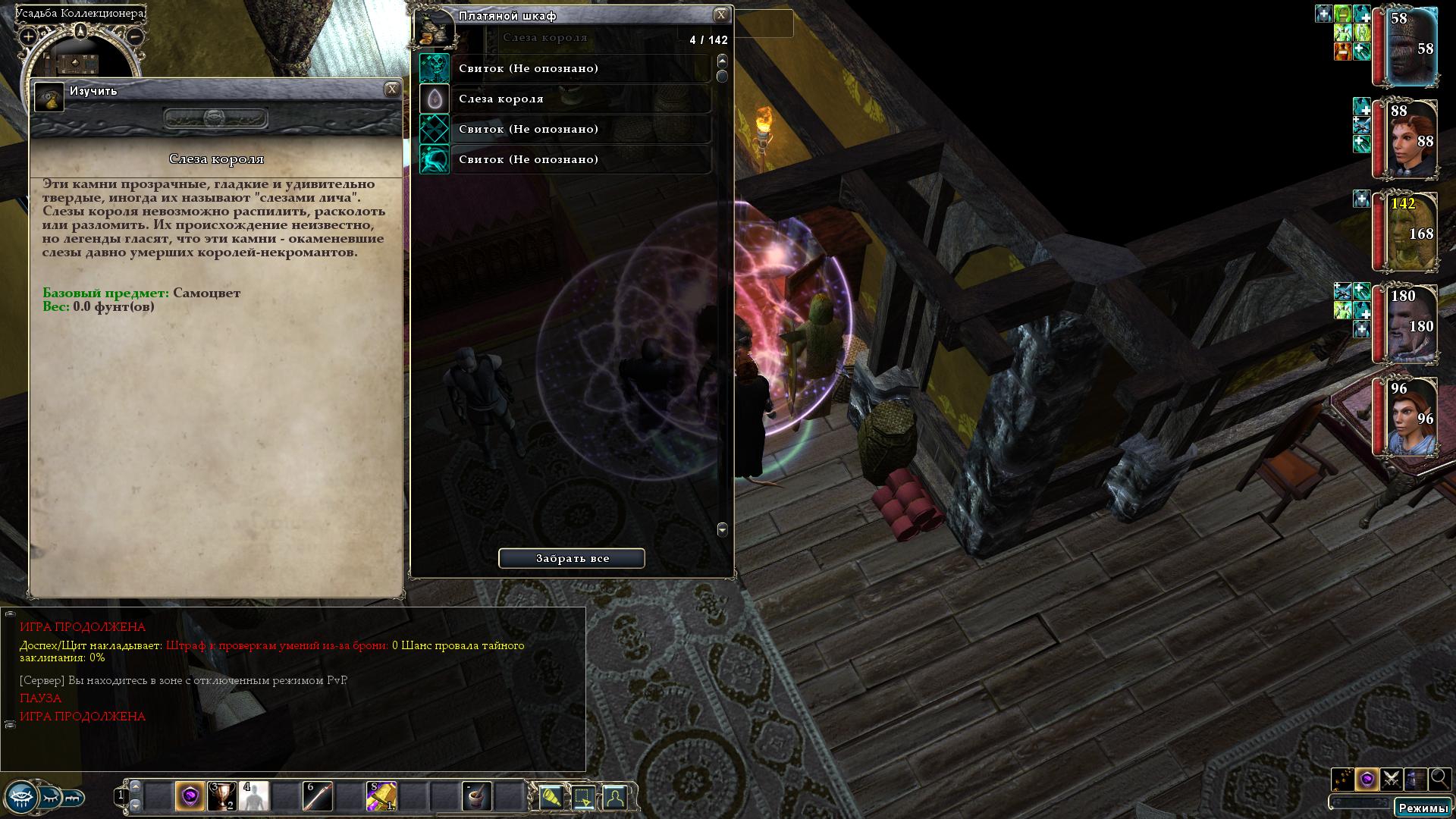 >>9793264 приятные приготовления завершены. настало время чистить квесты. сначала закрываем давний вопрос с нишкой и лелдоном. атака у врагов до +16, враги не злые. на второй этаж пройти можно только через ключ вании (соска коллекционера), у вании также жемчужина с заклинаниями исцеления (можно украсть). ну жемчужина хуйня в целом. нельзя не упомянуть о том, что ванию можно заставить млеть массажем ног. да да я. вареник наверняка в процессе тоже можно потеребить, хоть это и осталось за кадром (да и нишка с элани охуели наверно). рядом с ванией шкаф с камнем уровня изумруд - бриллиант. рядом с ванией стол с подсказкой (коллекционер ценит картину океана). в комнате со слугами нужно наполнить бутылку водой бель дельфины кек на 2 этаже нужно взять один ключ из камина, потушив огонь, второй у коллекционера, пригрозив порезать картину с океаном. можно привести наверх ванию как заложника, но без толку (тупая пизда оказалась просто ходячей пиздой, хотя мнила себя лучшим экспонатом коллекционера). в шкафу в углу ловушка, во втором шкафу рядом подсказка. в шкафу рядом с коллекционером камень уровня королевской слезы - бельджурила. очень нужно! на двури нужно использовать оба ключа и потом ввести код 513. если ввести не тот код, то срабатывают ловушки. первые 3 раза - ловушки и спавнятся враги. всего 8 шт. по 73 опыта на 12 лвл. после 3 раз - ловушка ужасного увядания (магический дамаг по области). после открытия появится лелдон один. соответственно откисает. в тайнике церемониальная броня эльфов (фул плейт с фокусом на магии) и амулет +4 мудрости, а также гарантированный звездный сапфир. лучший крафт по взятию камня - пояс +8 силы. келгар становится потихоньку машиной.
