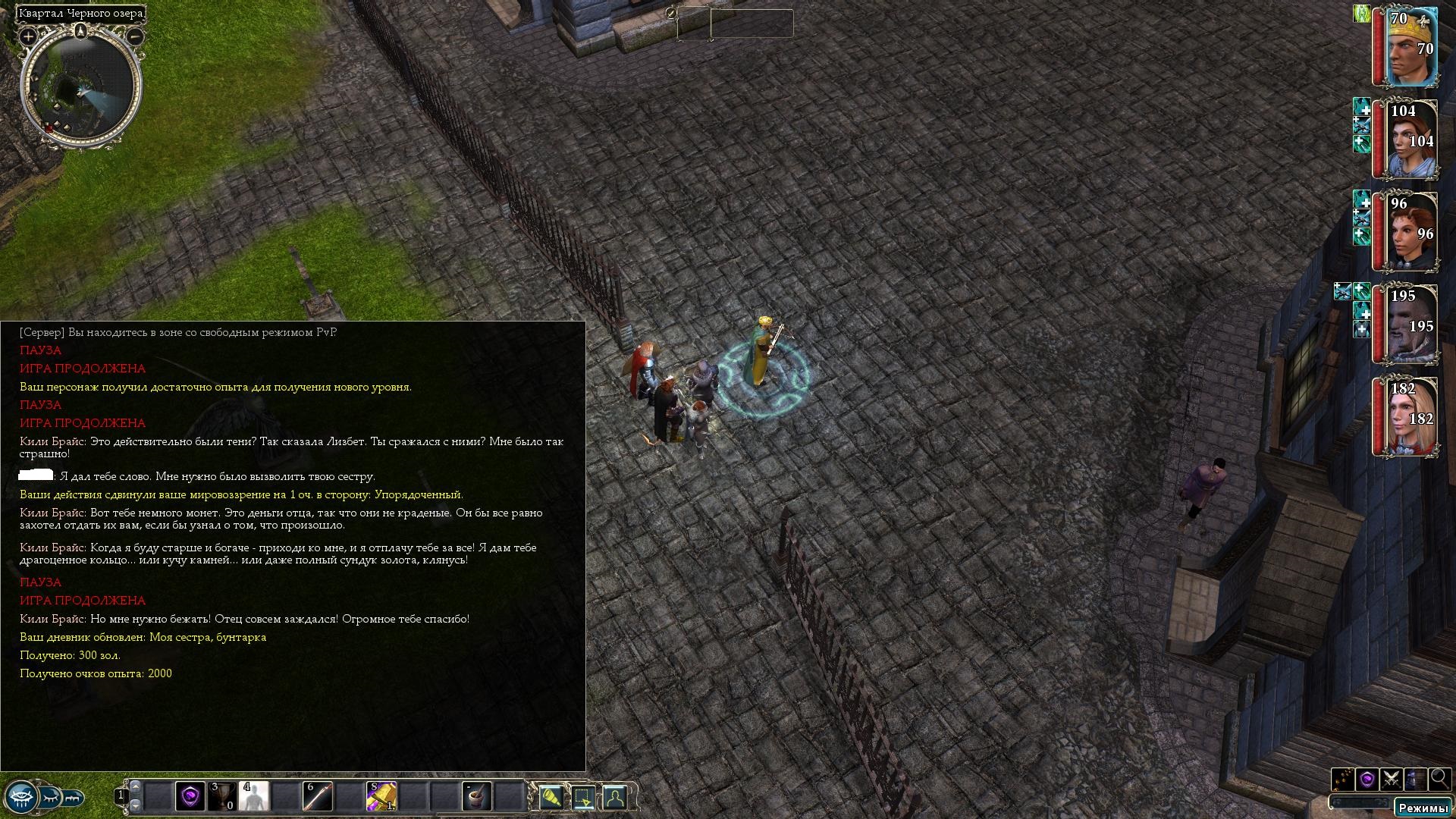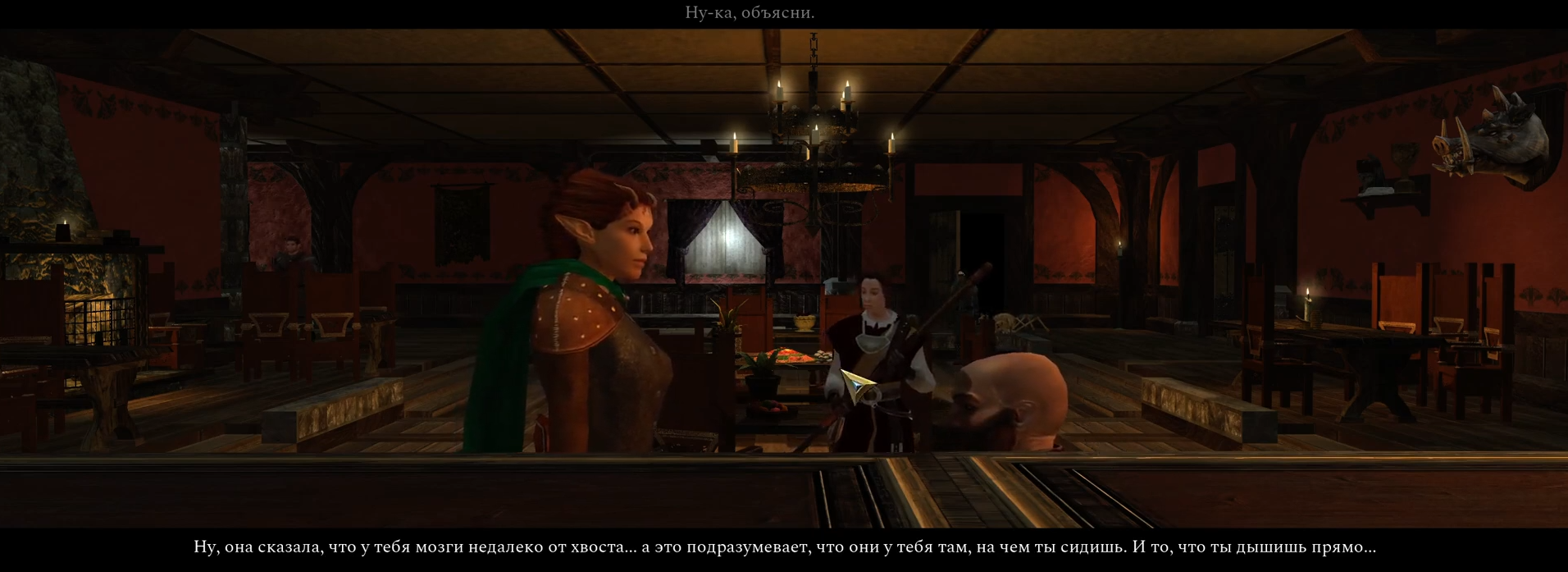 >>9789034 чтобы лучше понимать скриншотики, суть такова. ванильная история ОС нвн2 это классическая история фентезийного становления героя и последующего спасения региона. сравнивать ее с маской некорректно, в маске хай лвл приключение, там идут уже взаимодействия с -полу и богами фаеруна. гг мирно жил на болоте, болота постепенно накрывало зло, растения не росли, начали появляться монстры. однажды монстры пришли, все к хуям сожгли, искали в деревне, как оказалось, осколок серебра. литералли. приемный отец в конце концов выпизднул гг на дорогу в невервинтер в соло. встречаем забияку воина келгара, случайно попавшуюся стражникам рогу нишку, следящую за гг друида элани. решаем вопросы местного охранного форта (коррупция, нежить, разбойники). едем дальше. дорога в невервинтер может быть под надзором, плывем на корабле, для начала решив вопросы с рептилоидами, мешавшими судоходству. в невервинтере бандиты уже чуть ли не сравнились численностью со стражей. ебашим их. из крестьянина, зарезав буквально десятки людей, превращаемся в героя невервинтера. потихоньку конечно. для этого решаем пограничные вопросы с орками в горах. узнаем что орки, монстры на болотах, нежить и т.д. это последствия поднявшего голову зла. зло именуется королем теней. с королем тесно связаны и кусочки серебра, за которыми приехали в нашу деревеньку на болотах. это осколки йоба артефакта, серебряного меча гитиянки. ищем осколки, пиздим нежить, небо, гитиянки. в роликах узнаем, что все хотят осколки. в конце концов город Лускан (северный сосед невервинтера, тоже стоящий на берегу океана и являющийся эдаким классический злом) подставляет гг, вырезает население одной деревушки и вешает это на гг. ну благо гг уже приподнялся, его делают оруженосцем рыцаря (для того чтобы не отдавать лускану и судить в невервинтере) и посылают искать пруфы невиновности. ах да, в конце 1 акта гг решает вопрос с гитиянками и узнает (убив их предводительницу) что король теней грядет и всему миру (региону) пизда.