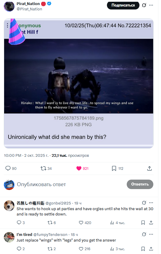 >>9828349 Меня ещё прикалывает "логика" даунских гоев (причём даже местных). Мол, если ГГ няшечка-писечка, то это не повестка. Вот если бы страхоёбище было, то тогда да. Сидят ебантяй воюют со здравым смыслом, у самих контент весь в ЦП. Пиздец, просто биоскот ёбаный, такому всё можно продать под красивой обёрткой.