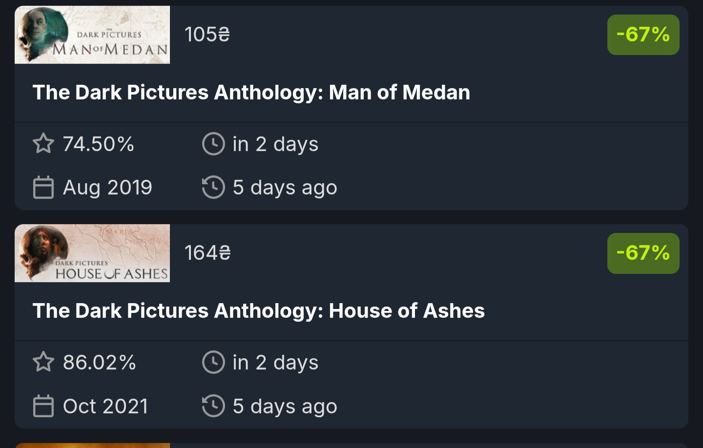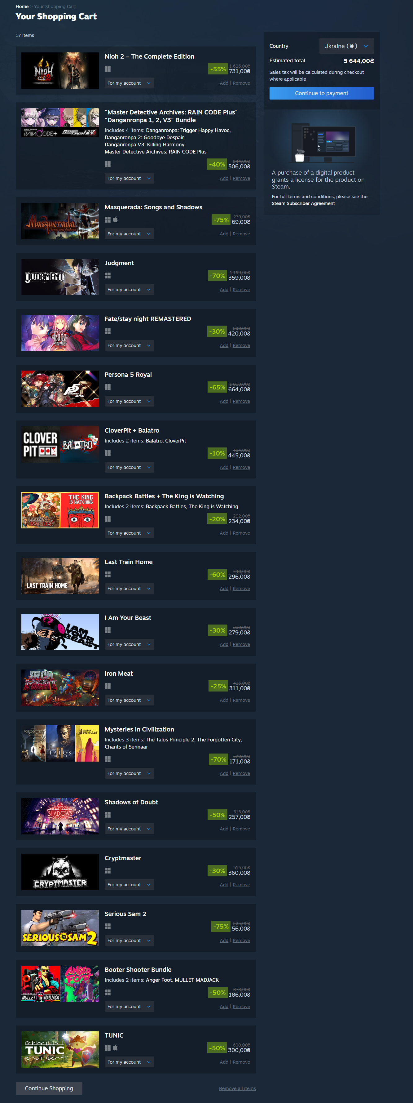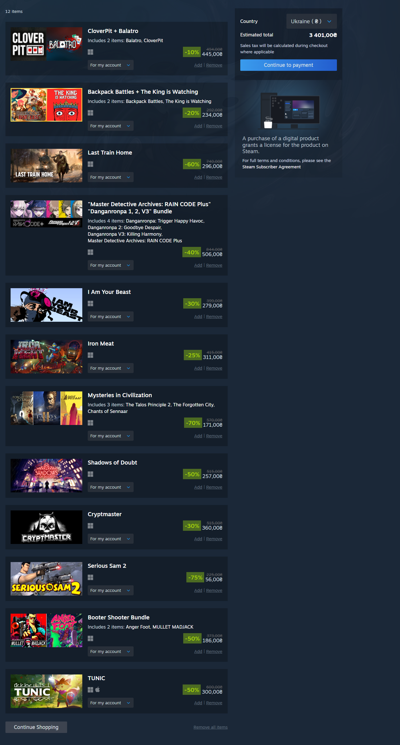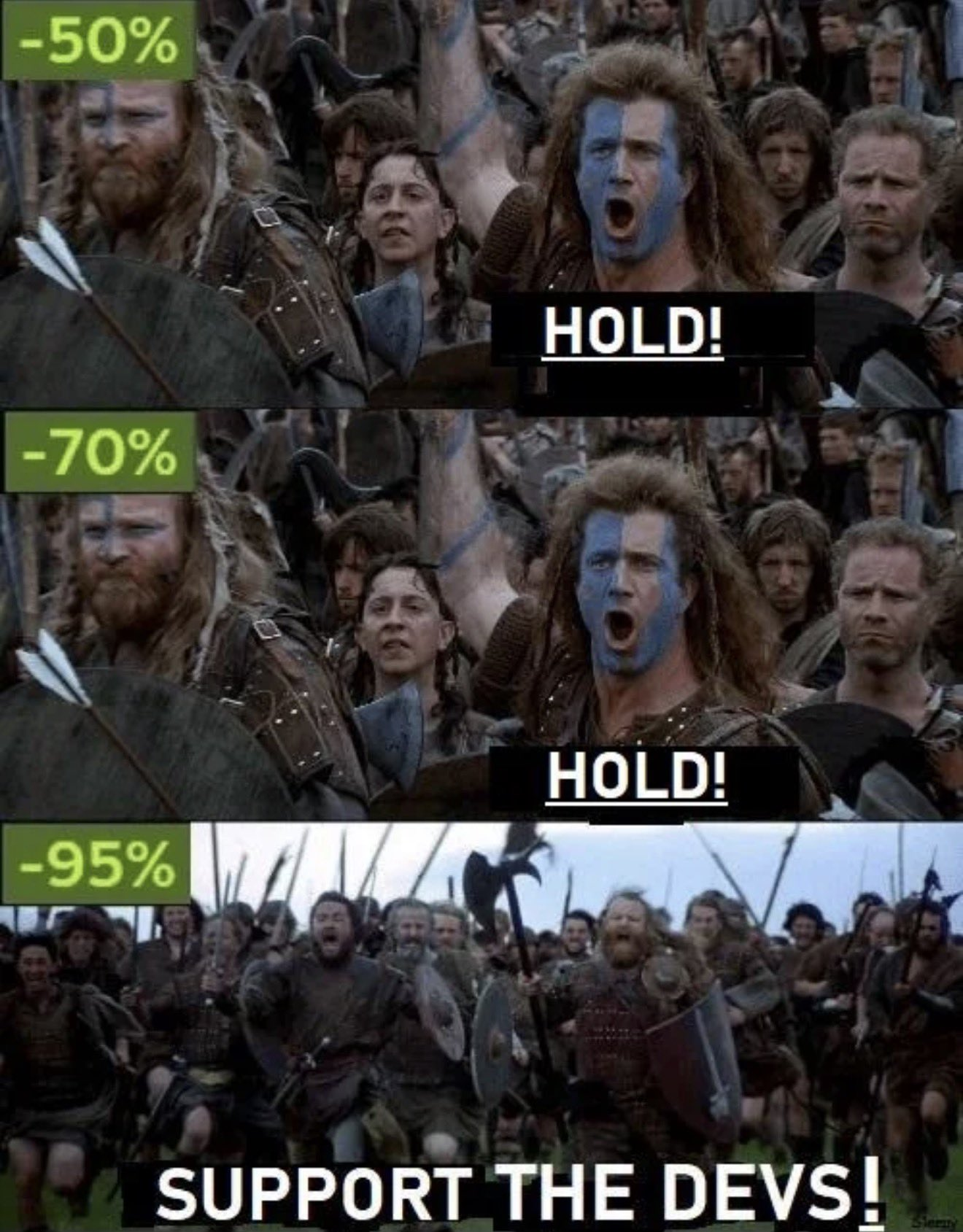 Чел, распродажи не для этого. Распродажи это набрать два пакета говна за цену одного похода в магазин и радоваться. Я вот на 22 доллара прикупил 19 игрушек и радуюсь. Половина олдовые винчики, половина какая-то обскурная херь, о которой впервые услышал, но отзывы были строго позитивные, а вдруг зайдёт. Я так на прошлой распродаже купил за пачку сухариков Blacktail, о которой никогда не слышал, уже 40 часов в неё влил. Если б не распродажа, никогда б не знал даже про такое.