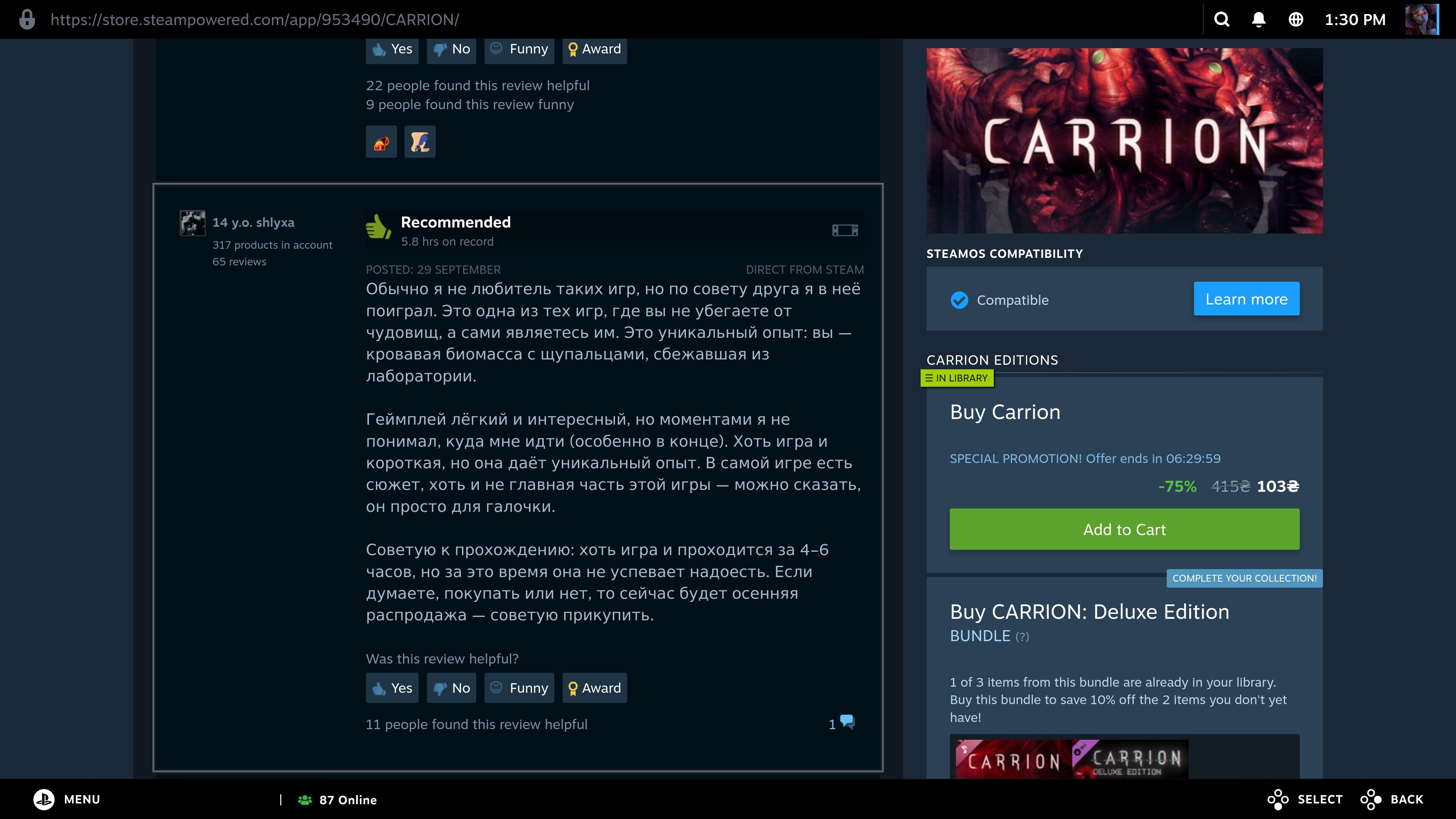 >>9829245 (OP) Зашёл щас в русский стим в браузере - на главной то же самое говно, которое там было лет 35 назад - крузисы, контролы, теккены всякие. Крузисы купил чисто потому что они заебали постоянно висеть на главной, каждую неделю на них скидки, но ни разу не запускал. Контрол прошёл, но без удовольствия.