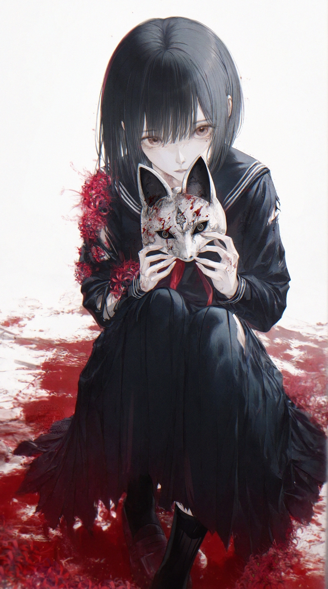 Или, бля, то, что изображения пыток это не на самом деле пытки, а символичный образ переживаний, которые стояли перед Хинако перед свабдью. - Отрубание клешни это символ того, что она отдаёт свою руку суженому - Печать на спине - символ того, что она берёт чужую фамилию и переходит в другую семью - Маска лисы вместо лица - потеря идентичности и становление другой (роль покорной жены).