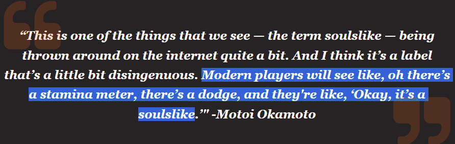 >Медленная и тягучая боевка >ломающееся оружие >удары оружия о стены >стаминабар >лок на цели >парирования/увороты >мобы с типичными сосаликовыми паттернами на задержклу атаки >типични сосаликовый визуальный дизайн боссов с типичним >паттернами аттак для них >аналоги боунфаеров на алтарях, которые выступают сохранялками и магазинами для прокачки