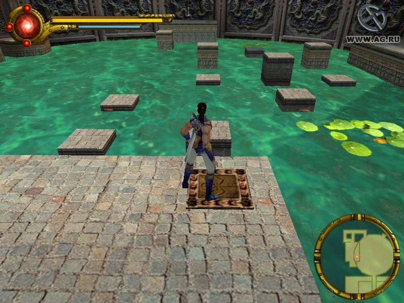 Единственное, что запомнил - в начале какой-то груженый мужской голос по-русски говорил что "зло может остановить только один... только один...", потом давали управление за какого-то персонажа от первого лица на коридорном острове, сделанном из кирпича, где происходил выбор уровней, но триггеры на переход на другие локации были сломаны т.к. пиратка, от чего игра была неиграбельной.