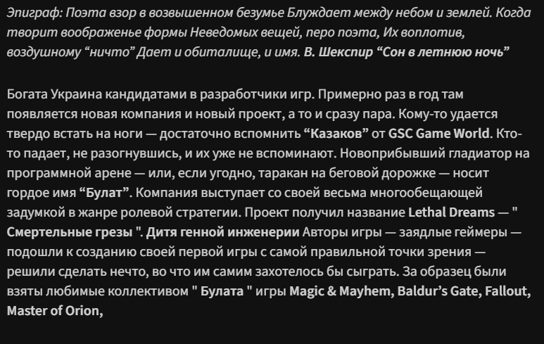 >>9841503 Учитывая времена, всем было похуй. СНГ-геймдев в любой стране СНГ содержал значительное количество выходцев откуда угодно - в Саскве не сидели сплошь русичи, а Ксенус делали не сплошь украны. Разделение по странам началось где-то ближе к концу десятых. Алсо, не зря в те годы чаще всего писали "отечественный разработчик", имея в виду под этим разрабов со всей территории бывшего СССР.