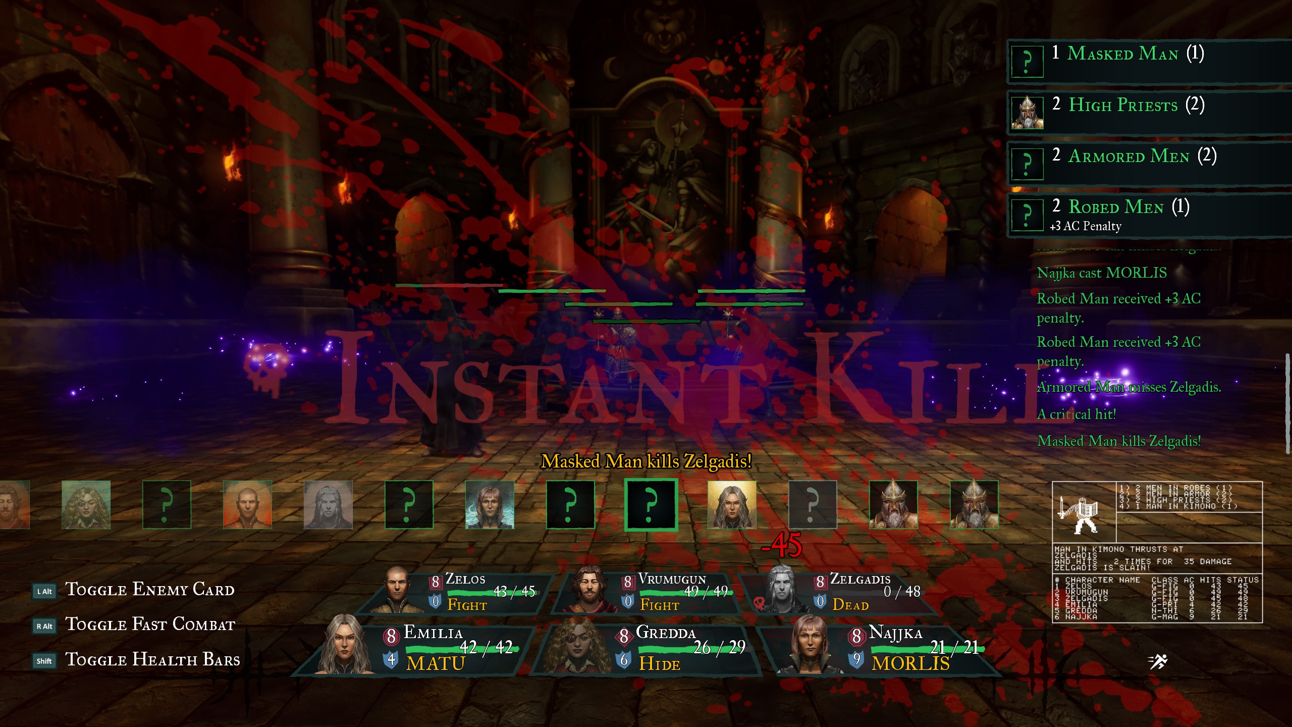 Первый раунд. Ниндзюк одним ударом убил Зелгадиса, потому что ниндзюк может убить любого с одного удара вроде. Потом меня с прокаста разъебали. Надо было кастовать сайленс.