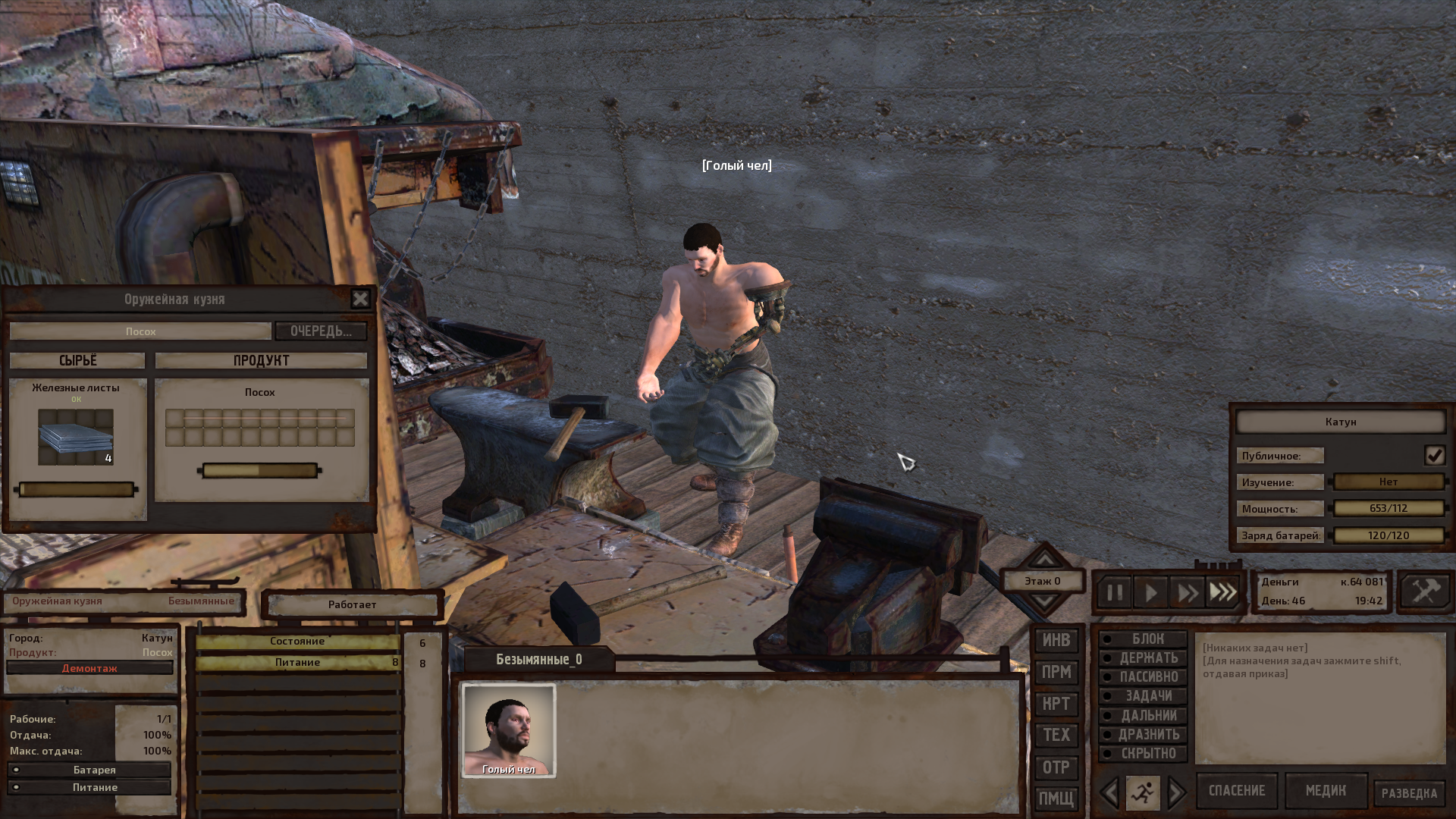 Я в Хабе сделал лабораторию и поставил станки в дома, а около Хаба в горах горнодобывающий комбинат, руда, камень, оборудование в моих зданиях, которое не влезло в город и агропром с запасами. Периодически мы ходим в рейды за нищтяками и боссами. Почти всю карту кроме самой трудной пепельной зоны я открыл. Остался последний большой рейд, я собираюсь в него уже год ))
