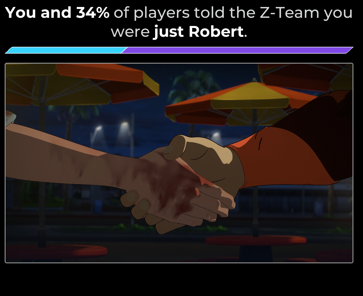 Кстати тут уже предполагали что проценты сделавших такие же выборы игра показывает от фонаря, подтверждаю. Играл с выключенным интернетом, похуй, игра пишет эту херню все равно, хотя данные явно брать неоткуда.