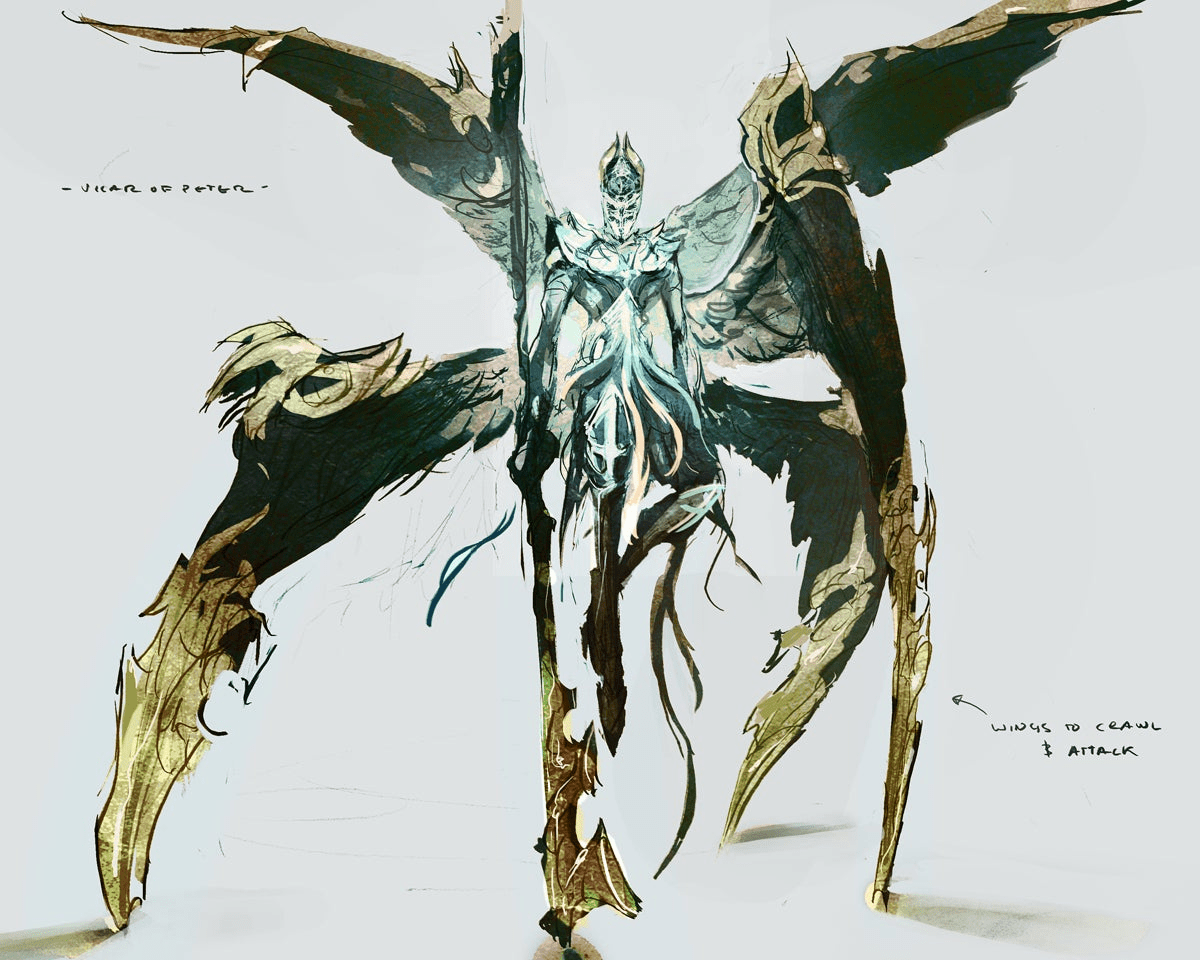 -В IGN рассказали ещё об одном боссе — Наместнике святого Петра, огромном ангеле с четырьмя крыльями, которые он использовал в качестве лап, будто паук. Согласно описанию, он охранял вход непосредственно в само чистилище.
