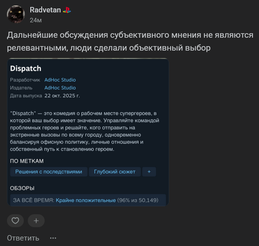 >>9923946 А мне нужно что-то крыть? Игра с напрочь проебаной стилистикой, сделанная хуй пойми кем чтобы срубить бабла и имеющая 42 на метакритике. Вроде тут уже все покрыто, докрывать и не нужно. А ты проперся с игрушки, да?)))) Кайфовая игруля?)))