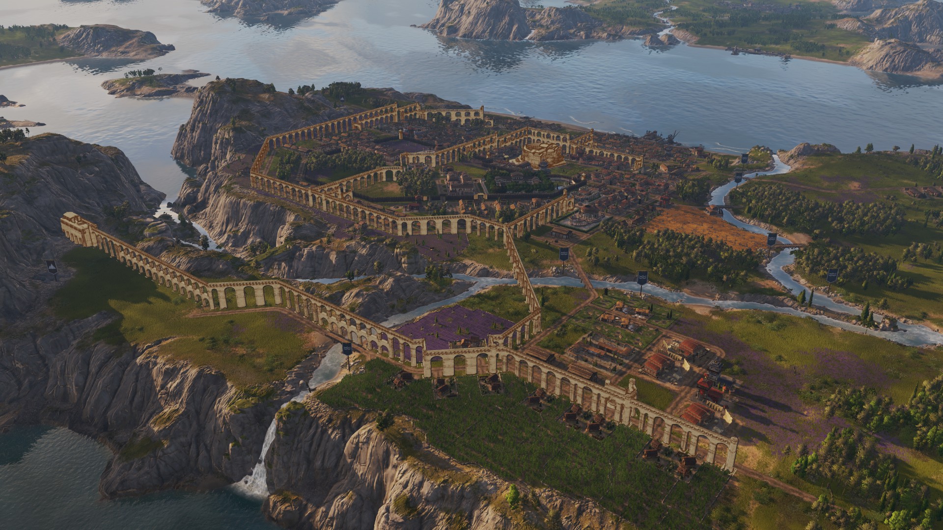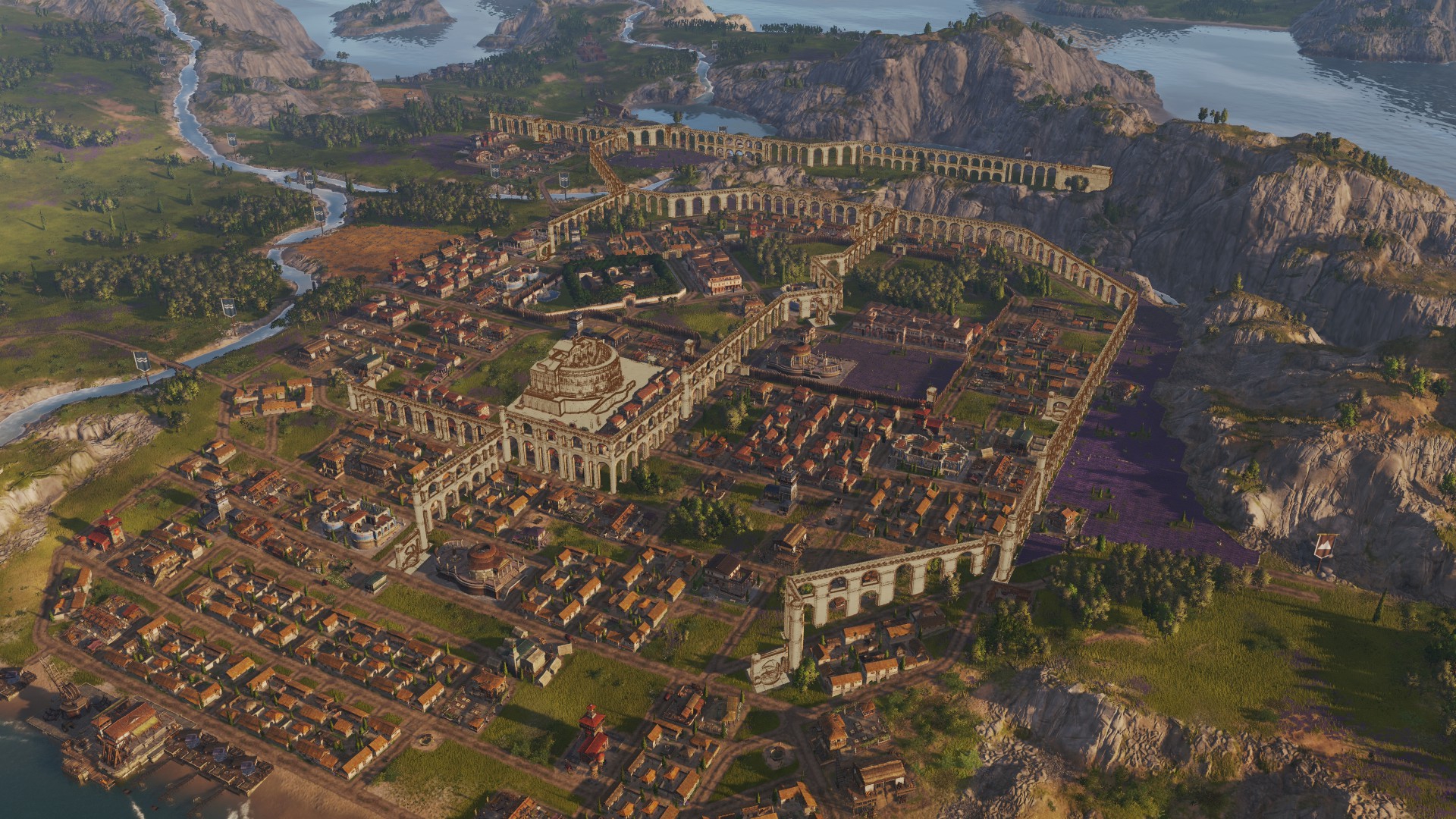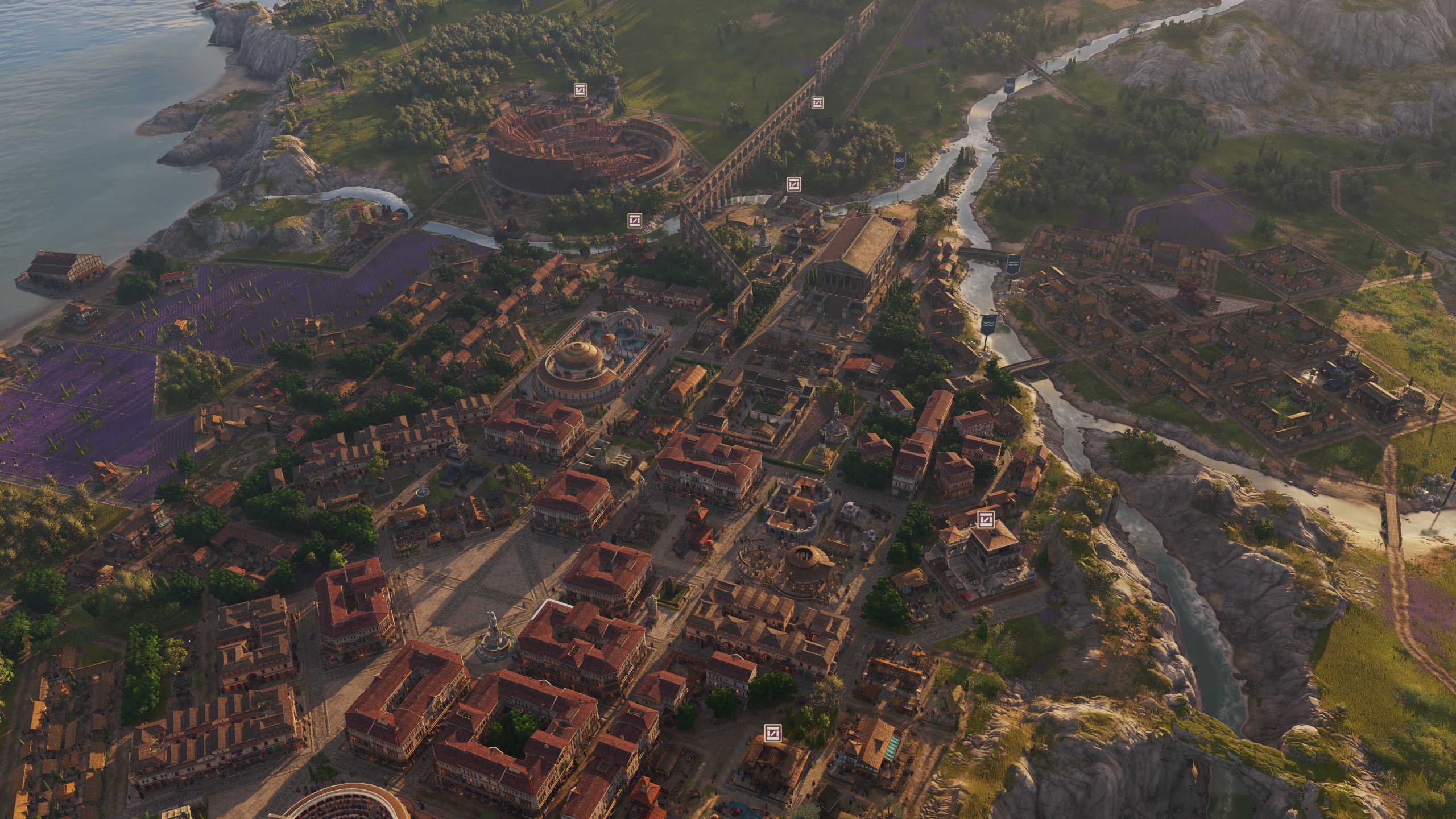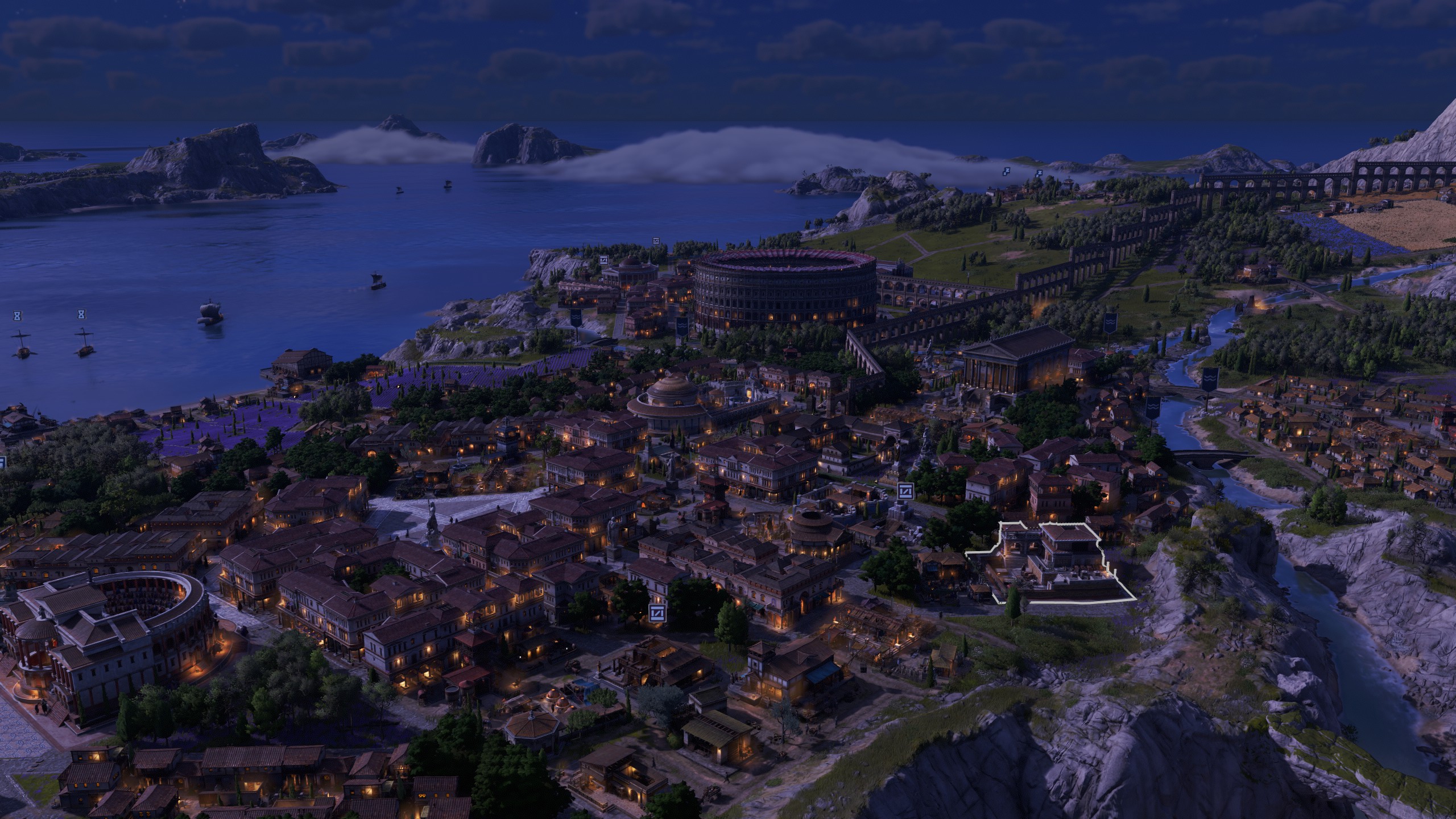 Как и ожидалось, всё планирование пошло по пизде. Внезапно, акведуки используют топографию острова и, снова, внезапно акведук не может идти вверх, только вниз. И пересекаться с другим акведуком тоже, что конечно, вносит определённые корректировки в моё планирование и пускают по пизде весь мой остров и его планировку. Алсо театр оказался ебать каким большим.