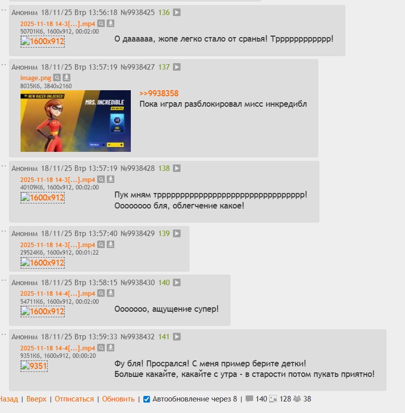 >>9938432 >>9938430 >>9938429 >>9938428 >>9938425 >>9938422 И вы говорите, что ЭТО Я якобы "вайпаю" тред. Тут сидит буквальный пидорасина показывающий свои дилдаки, срущий всрато закодироваными видео с интервалом блядь в минуту, так еще и линуксоамудепетух.