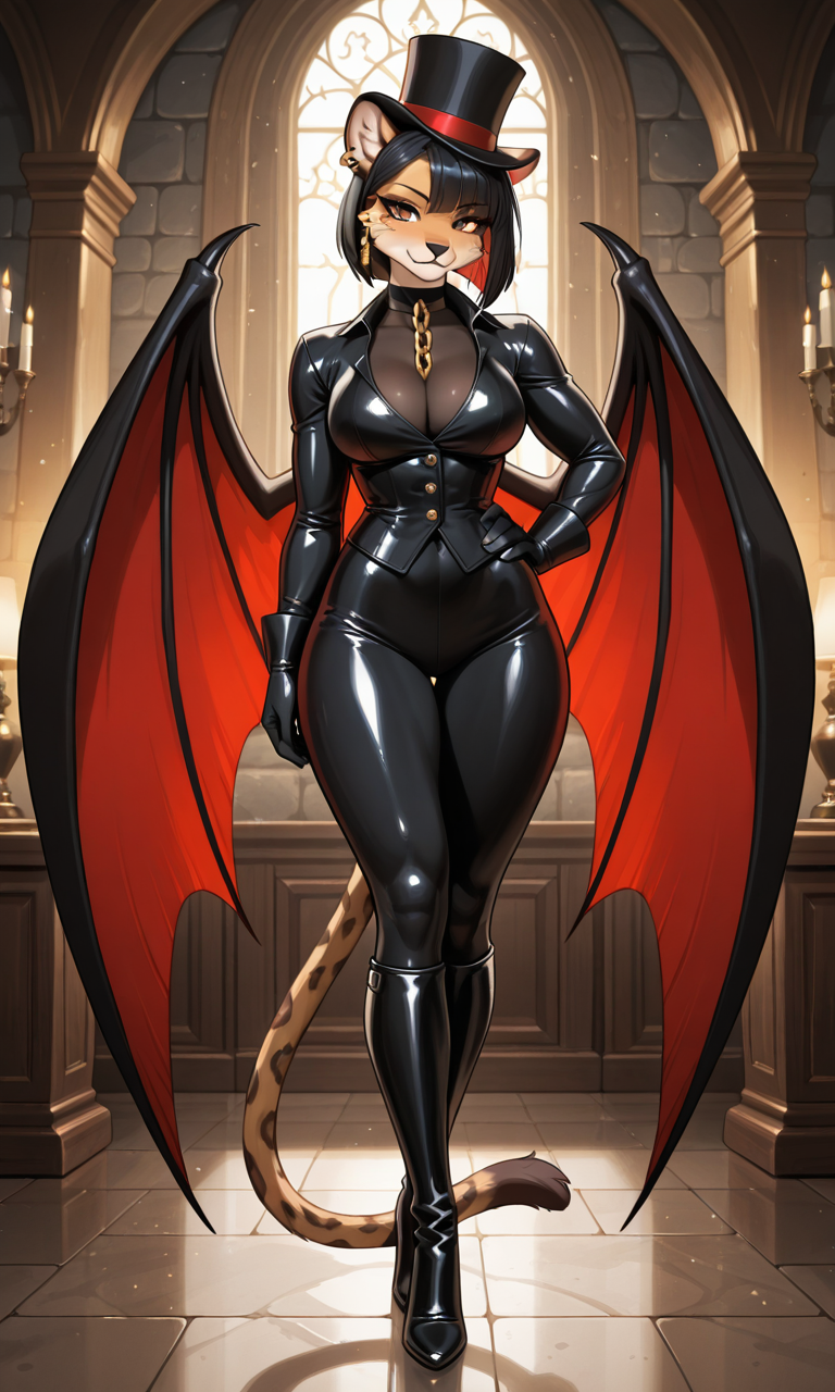 >>9938689 Просто написал в промте на буржуинском типа: "каджитка, крылья, шляпа-цилиндр, высокие каблуки, причёска каре" и так далее. Получилось сразу похоже, но ближе к оригиналу только раза с четвёртого.