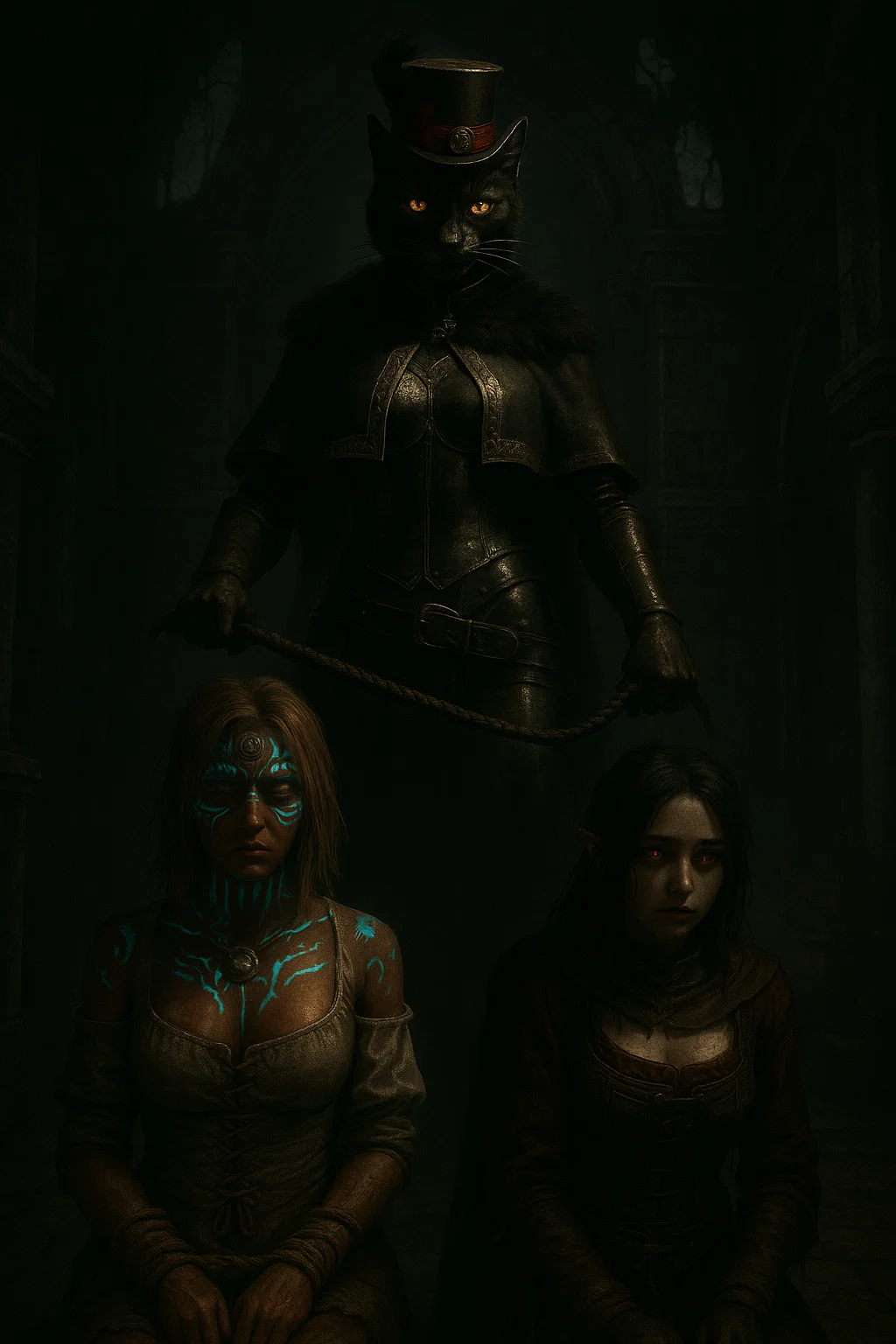короче хотел сделать так, что бы тот каджит ссал на них двоих с барной стойки как анекдоте от тарантино садом и гоморра короче, но нейронка опять че-то начала визжать про изменение политики, поэтому хуйня вышла какая-то