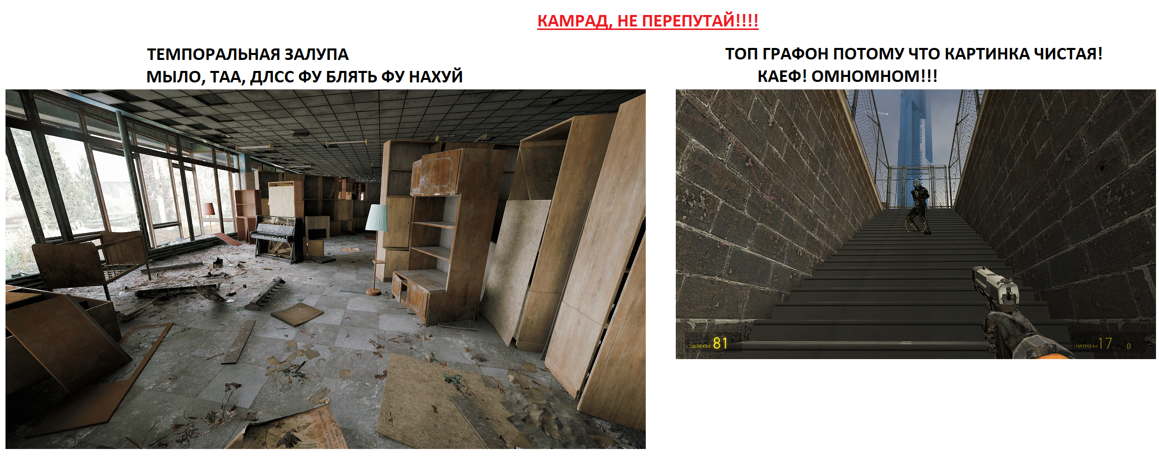 Просто напоминаю, что в этой шапке с катышками, курточке с ниточками, кроссовке рандомных бомжей в сталкере графона больше, чем в этих ваших халфах и крузисах вместе взятых (хоть я и обожаю их и обе игры дали пизды всей индустрии в своё время).