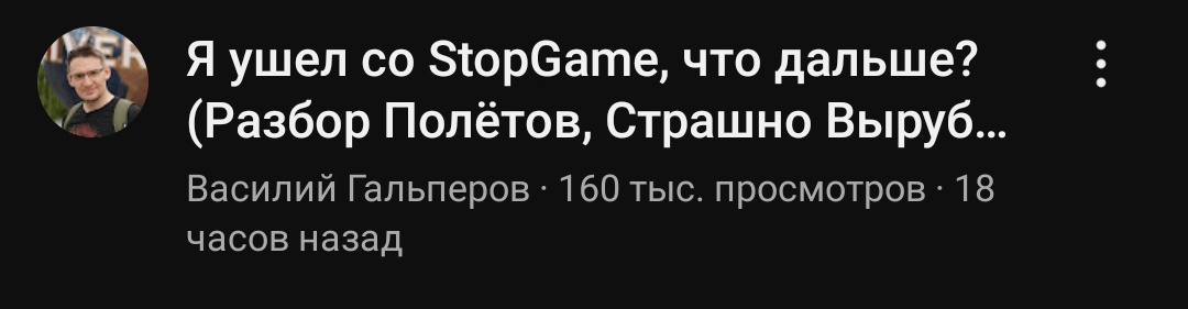 На самом деле жалко наблюдать за смертью стопгейма. Дело не в обзорах и игрожурстве, они тут вполне себе усреднённые продажничи, они довольно давно были такими. А дело во всяких видео по мотивам видевоигр, просто интересные идеи для стримов и проч. Смотреть с ними игровые выставки были весело. Сам Гальперов норм довольно, контент пилит неплохой, но если честно вот кровь и плоть игрожурская, хвалил всякую чушню, недавно совсем даже открыто за чемоданами к продолжению Смуты заехал. С другой стороны если кто-то не иронично хвалит того же Тоху, то Гальперов на его фоне смотрится даже выгоднее.