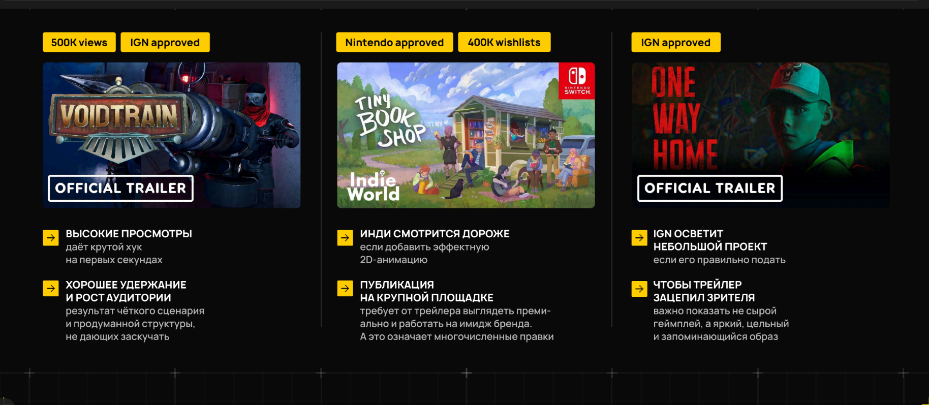 Я на почту написал типо хочу трейлер для игры у меня инди студия, там сказали что прайс на 3 минутный трейлер со всякими эффектами, монтажом и прочим стоит у них 700к вот и думайте зачем нужен сг если есть более денежная кормушка