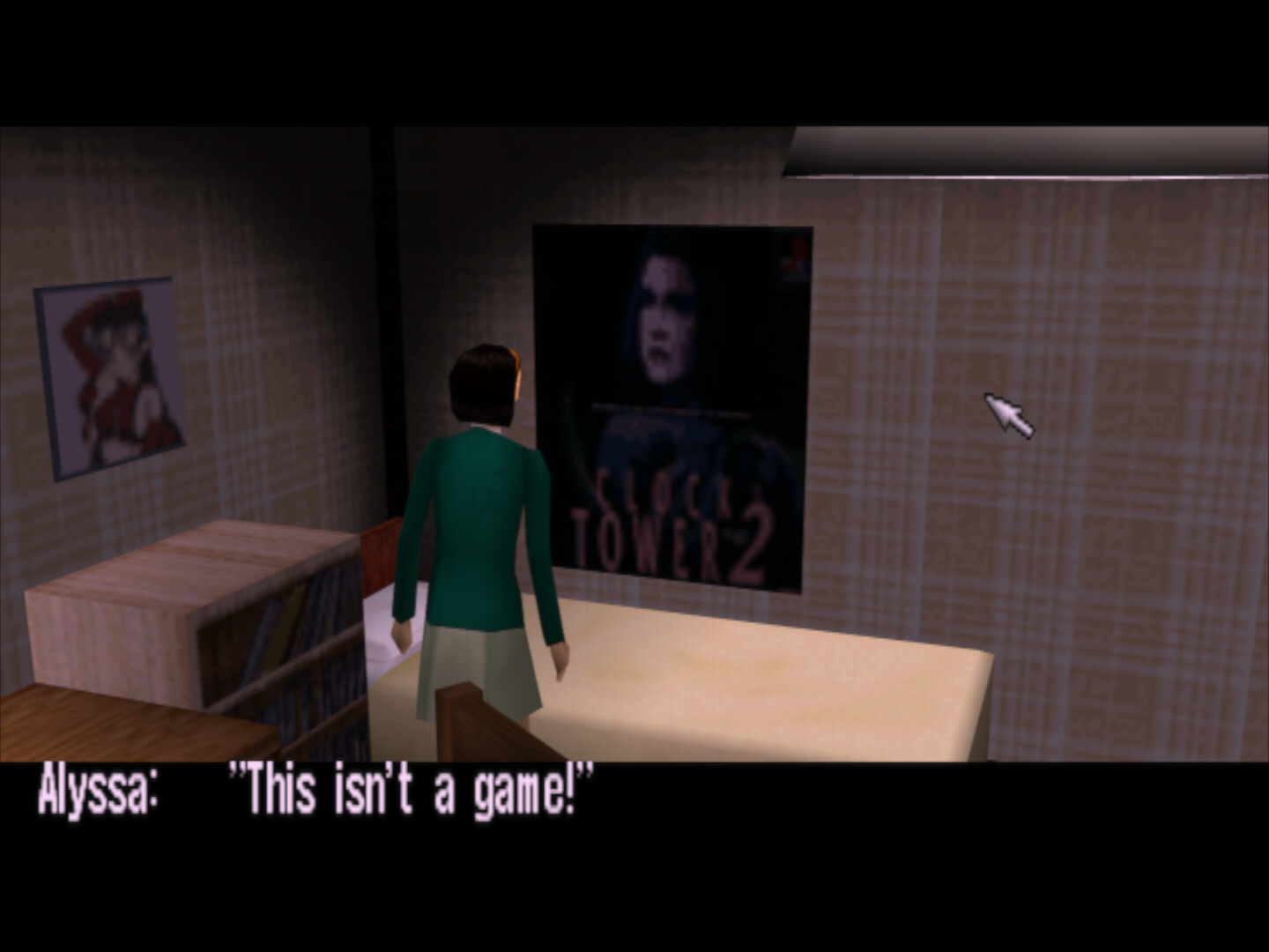 Минусы: все остальное. Игра пиздецки медленная, даже медленее, чем СНЕСовская: персонаж все так же лениво перемещается, но теперь двери открываются по 5 секунд. Управление. Плавающий курсор, будто здесь встроенная акселерация. Странно, учитывая что это не порт, а ПС1 эксклюзив. Может дизайнили в первую очередь под PlayStation Mouse, хз. Курсор намертво прилипает к интерактивным предметам, если он хоть немного рядом, что, с одной стороны, упрощает нахождение предметов, с другой мешает всю игру, потому что ты постоянно пытаешься "отлепить" этот курсор-магнит. Графон. Пиксели из первой части хорошо состарились и отлично выглядят даже сейчас, (как и пререндерные задники в других играх той эры), но здесь мы имеем невероятно уродливое раннее 3Д. Справедливости ради, благодаря тому, что игра полностью 3Д, эта позволяет ей местами иметь необычные ракурсы, потому что камера не приклеена к одному месту, а перемещается с персонажем. Геймплей предельно простой: убегаешь от главного маскота серии (карлик с ножницами), попутно нажимая на предметы, которые становятся интерактивыми только во время погони (ударить сковородой, скинуть ему ящик на голову, спрятаться в шкафу/под диваном, етс), когда он тебя догнал - долбишь окну кнопку чтобы пройти QTE. Если сдох - ресаешься в той же комнате. На бумаге это никак не отличается от однухи, но там все же присутствовало какое-никакое напряжение, потому что нужно было тратить стамину на бег, но в этой игре от него можно уйти пешком - он передвигается со скоростью черепахи. Да и отцепиться от него слишком легко, чтобы он представлял хоть какую-то угрозу. Большая часть игры очевидная и без вопиющего пиксельхантинга, но под конец наваливают лунной логики (по крайней мере за Хелену), к примеру: книга не вставляется в книжную полку, пока ты не осмотришь следы на полу и гг не скажет что-то типа "кто-то двигал этот шкаф". Или 3 дырки с лестницами, спускаясь по которым ты всегда умираешь от крыс. Решение? В каждую из дырок нужно кинуть железный шарик чтобы замерить глубину, в 2 из 3 он падает в воду (несмотря на то, что ты только что спускался и там не было воды), а в 3 "вроде не особо глубоко" - и вот после этого ты можешь спрогрессировать. Про сюжет ничего писать не буду - он объективно ужасен, но при этом довольно развлекательный, как я уже ранее и сказал. Даже интересно, как карлик с ножницами смог стать серийным убийцей, если его стабильно опиздюливает 15летняя девочка...