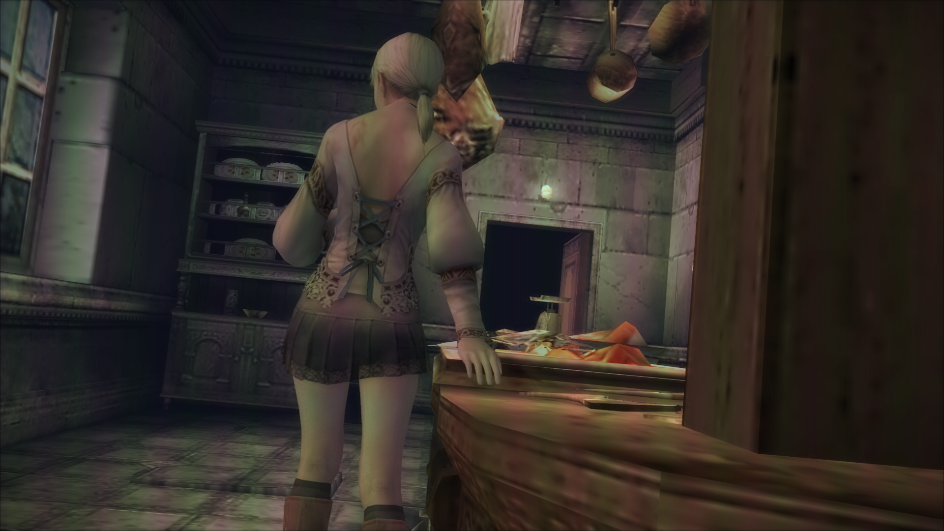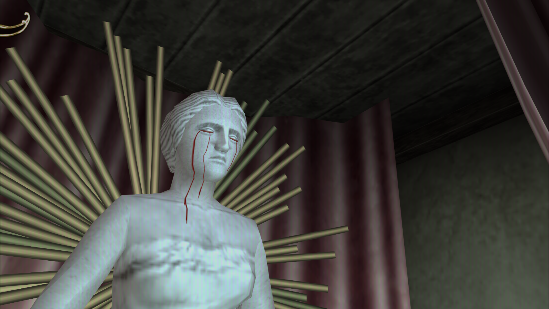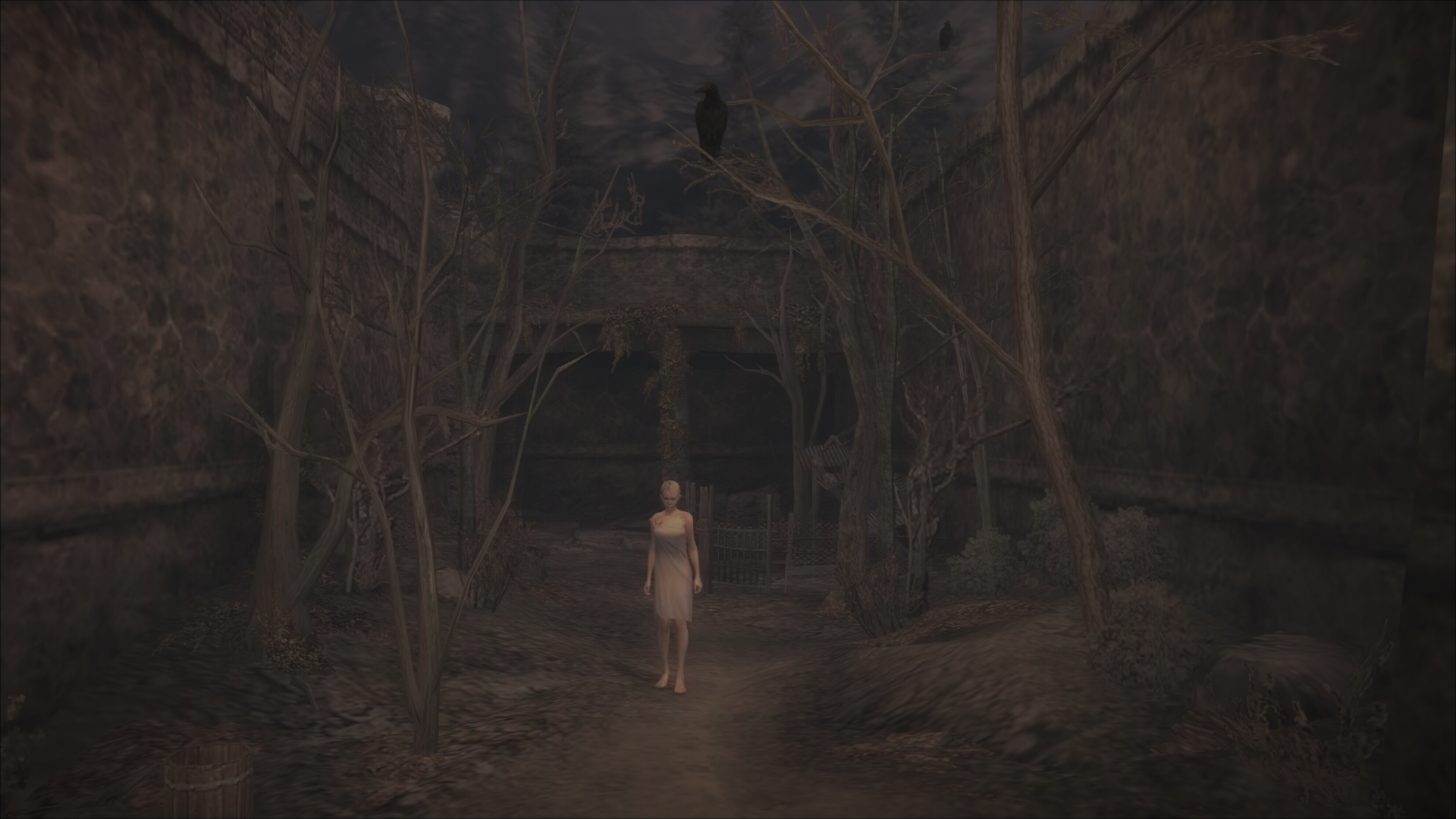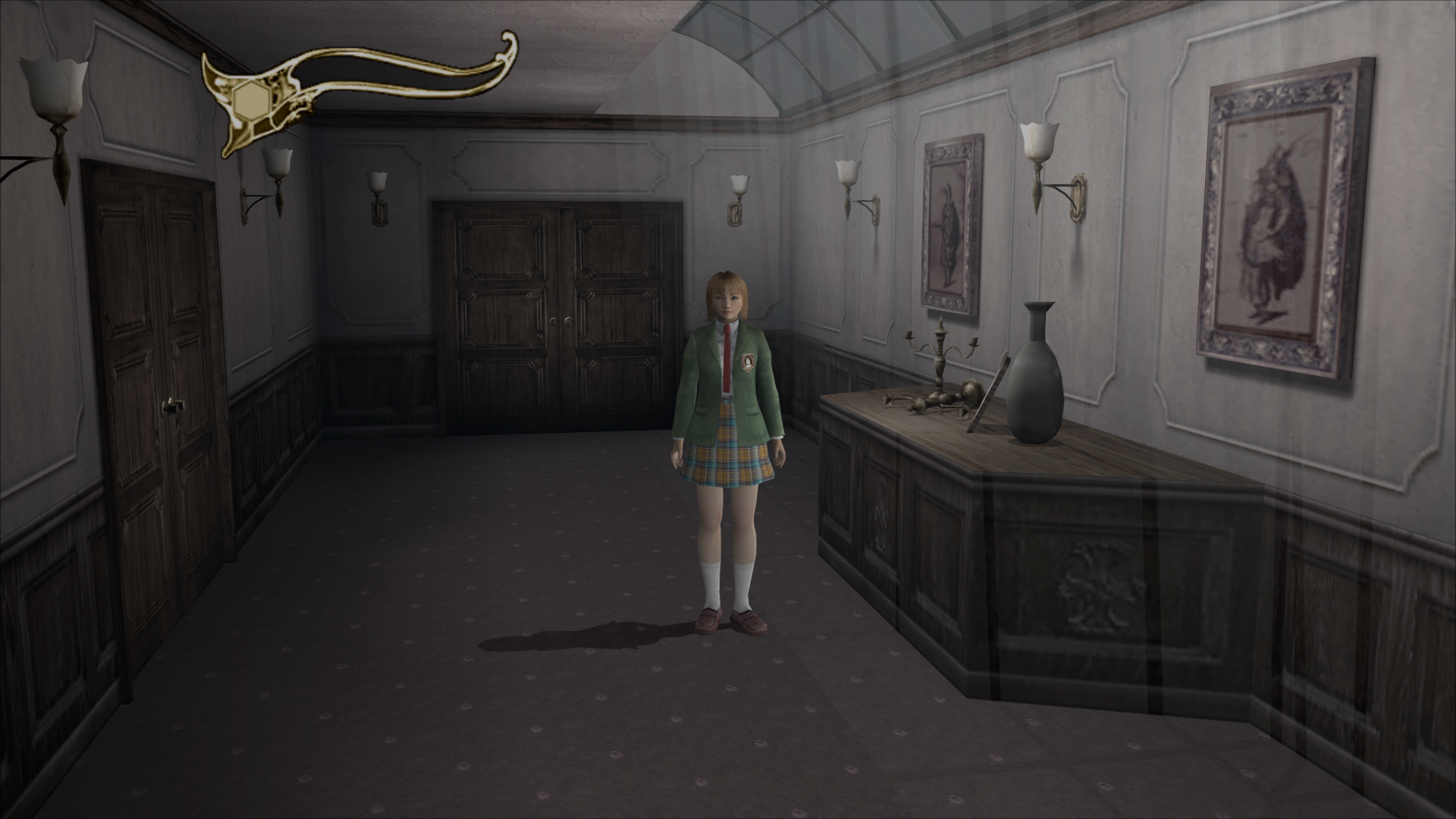 Геймплей. С одной стороны, это все та же формула "появился враг? беги в комнату и прячься в шкафу", с другой - здесь полный контроль над персонажем, нормальное управление (в противовес передвижению с помощью курсора в прошлых тайтлах), плюс есть святая вода, которой можно поливать врагов и которая восполняется на каждом углу, так что ты далеко не беспомощен. И это кульминируется в последующих боссфайтах, где ты убиваешь каждого из преследователей (их 4 в игре - по одному на каждый уровень) из лука, заканчивая зрелищным, грандиозным финишером, напоминающим спелл из какой-нить ЖРПГ. Эти босс-файты объективно помойные, но я почему-то кайфанул с них, не могу сказать почему. Но есть спорные моменты: 1. Враги появляются слишком часто, из-за чего ты всегда бежишь в место, где можно спрятаться. Это именно ОДНО место на локацию. После того как спрятался враг не пропадает моментально, а еще ходит туда-сюда некоторое время. Для чего это было сделано? Неизвестно, но спасибо наличию ускорения в эмуляторе, потому что было несколько моментов, когда я сидел полторы минуты в туалете в ожидании, пока враг таки соизволит съебать, после чего я вылез и он ПОЯВИЛСЯ СНОВА, заставив идти обратно на отсидку (прям у него перед лицом открываешь дверь, заходишь внутрь и начинаешь "прятаться"). 2. Если управление удобное, что позволяет запросто доджить врагов, то значит нужен какой-то подвох. И он тут есть: если враг наносит удар поблизости к главной героине, то вне зависимости от того, задоджил ли ты эту атаку - у тебя заполняется полоска "паники", а после заполнения ты теряешь контроль над персонажем и следующий удар отправляет тебя на гейм овер. Получается, что враги режут воздух, но ты все равно проигрываешь, доджи/не доджи - похуй. Это все, конечно, тривиализируется наличием святой воды, но, тем не менее, ощущается дешевым и нечестным: как бы есть атаки, но фактически от них не увернуться, так что все сводится к наличию/отсутствию ресурсов, а если у тебя их нет, то ты автоматически проебал, потому что в этой игре враги очень быстрые и от них невозможно оторваться. Опять же, это именно ощущение кривого геймдизайна, но игру не портит, т.к. она слишком простая.