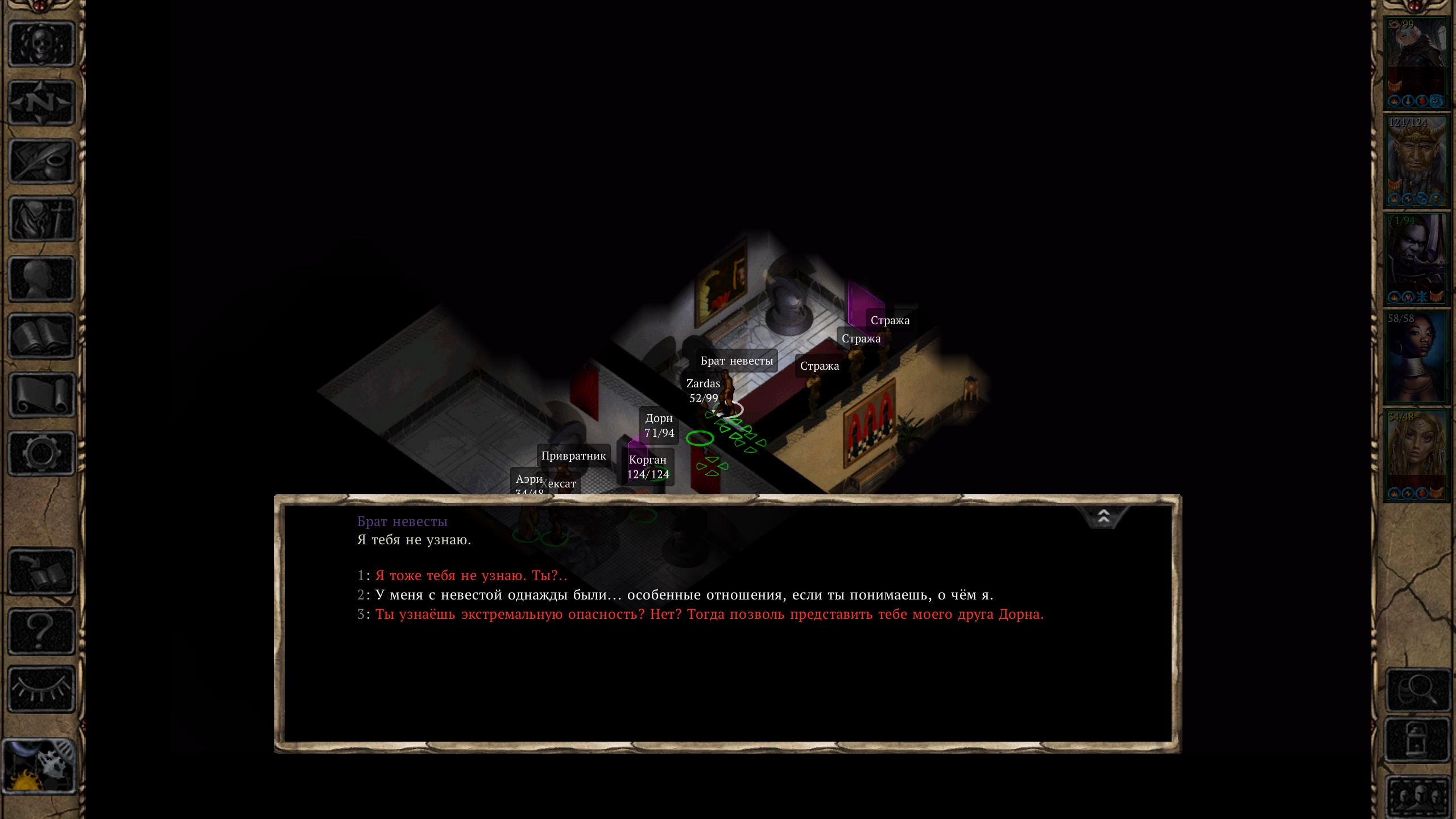 Заромансил эльфийку. Можно не трахать, а просто полежать вместе :3 Ну вообще я все варианты попробовал, конеш. Можно и обидеть. Знатную девку у меня её недожених забрал. Пока возьму паладина из канализации в пати. Как раз йоба меч хоть испробую, а то его только добрые палы таскать могут. Еще йоба катану +3 нашел. Но еще не испробовал. В том здании вообще довольно крутая пати была. Но я заабузил и с лестницы по двое их приманивал и разбирал на изиче.