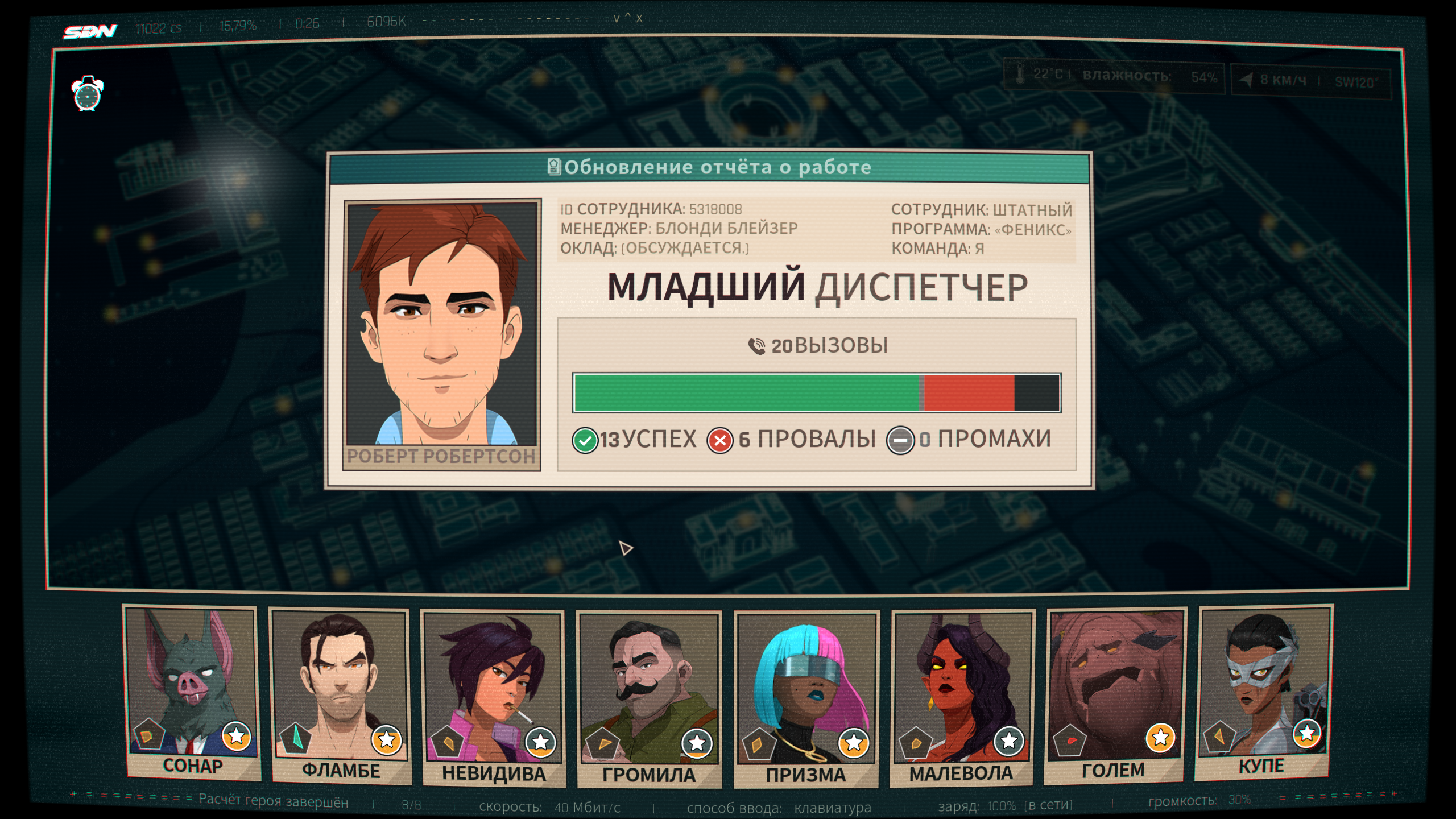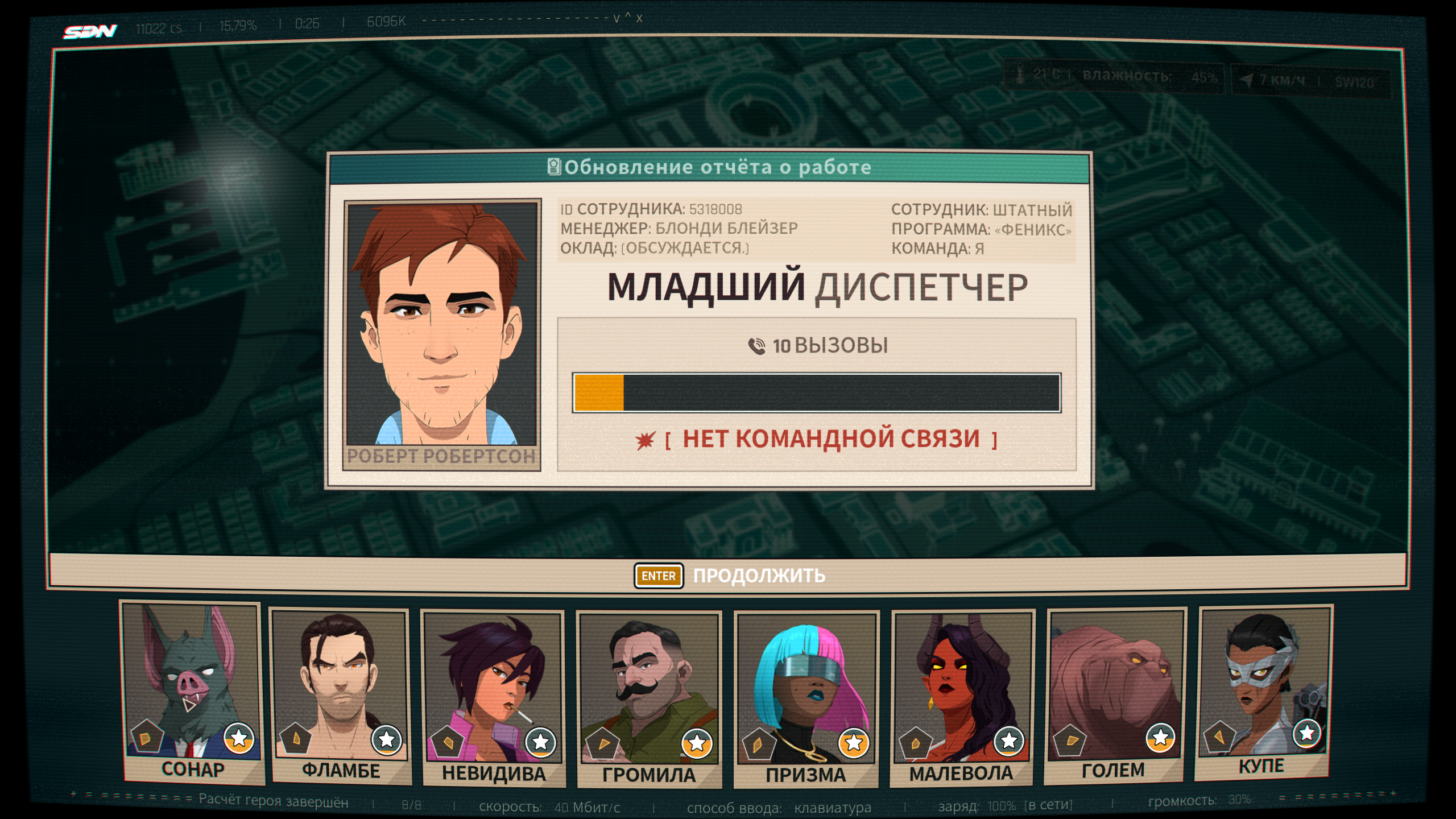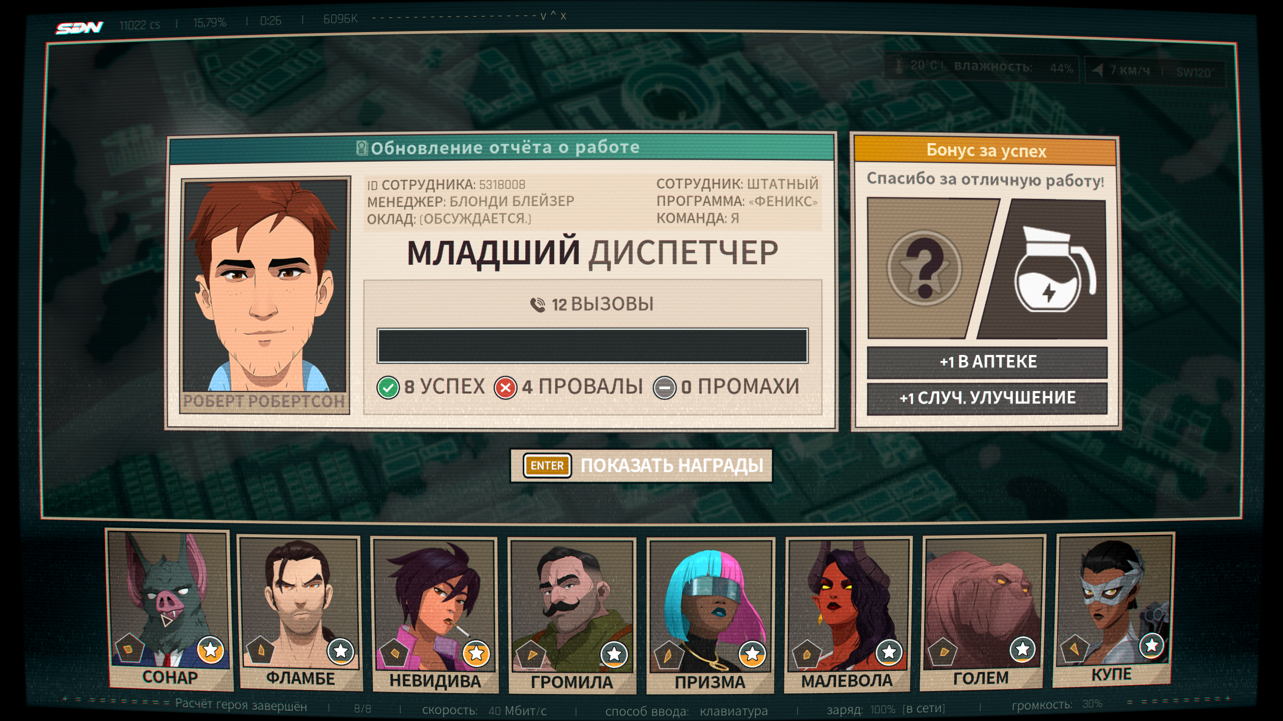 Блин давно меня игры не заставляли искренне улыбнуться Все же вот такие сюжетно-ориентированные проекты -- то что действительно оставляет сильное впечатление. Никакие геймплейно-ориентированные поделки так не могут. Ощущаю нечто похожее на ощущения во время прохождения Va-11 Hall-a, игры в целом похожи по своей сути. Упор на персонажей и их взаимоотношения, простая, но приятная мини-игра. Пока мне только не нравится фокус на единственном члене команды Феникс -- вот этой карланше слева на скрине. Вообще не нравится мне выбирать кого-то одного