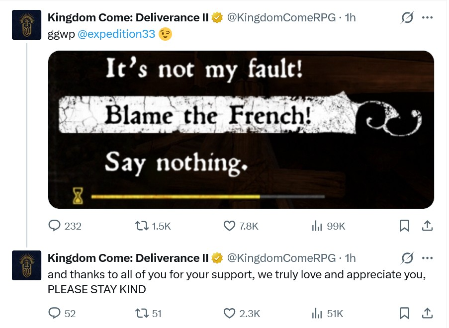 Разработчики Kingdom Come: Deliverance 2 разочарованы после провала на TGA 2025 – во всем виноваты ф