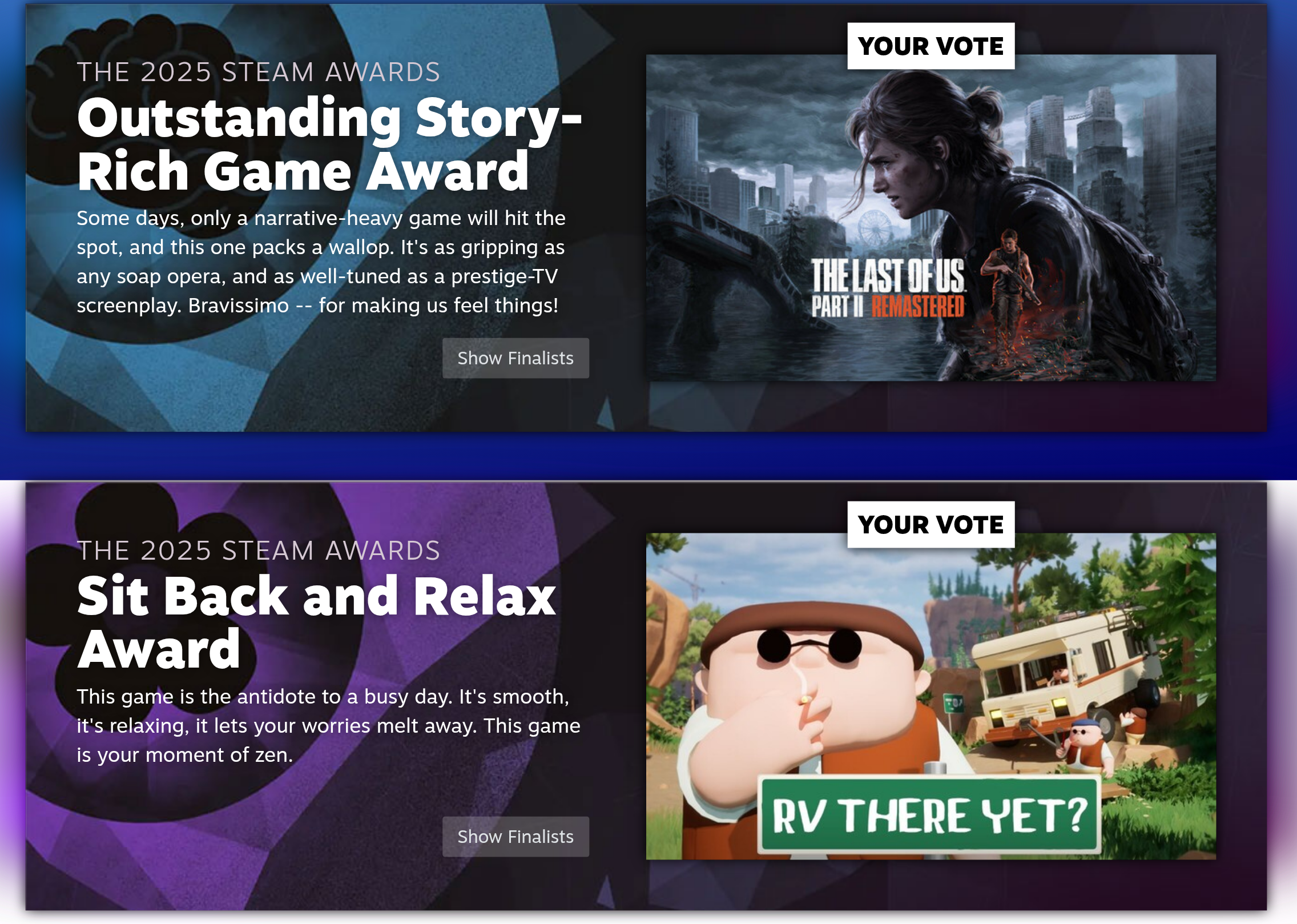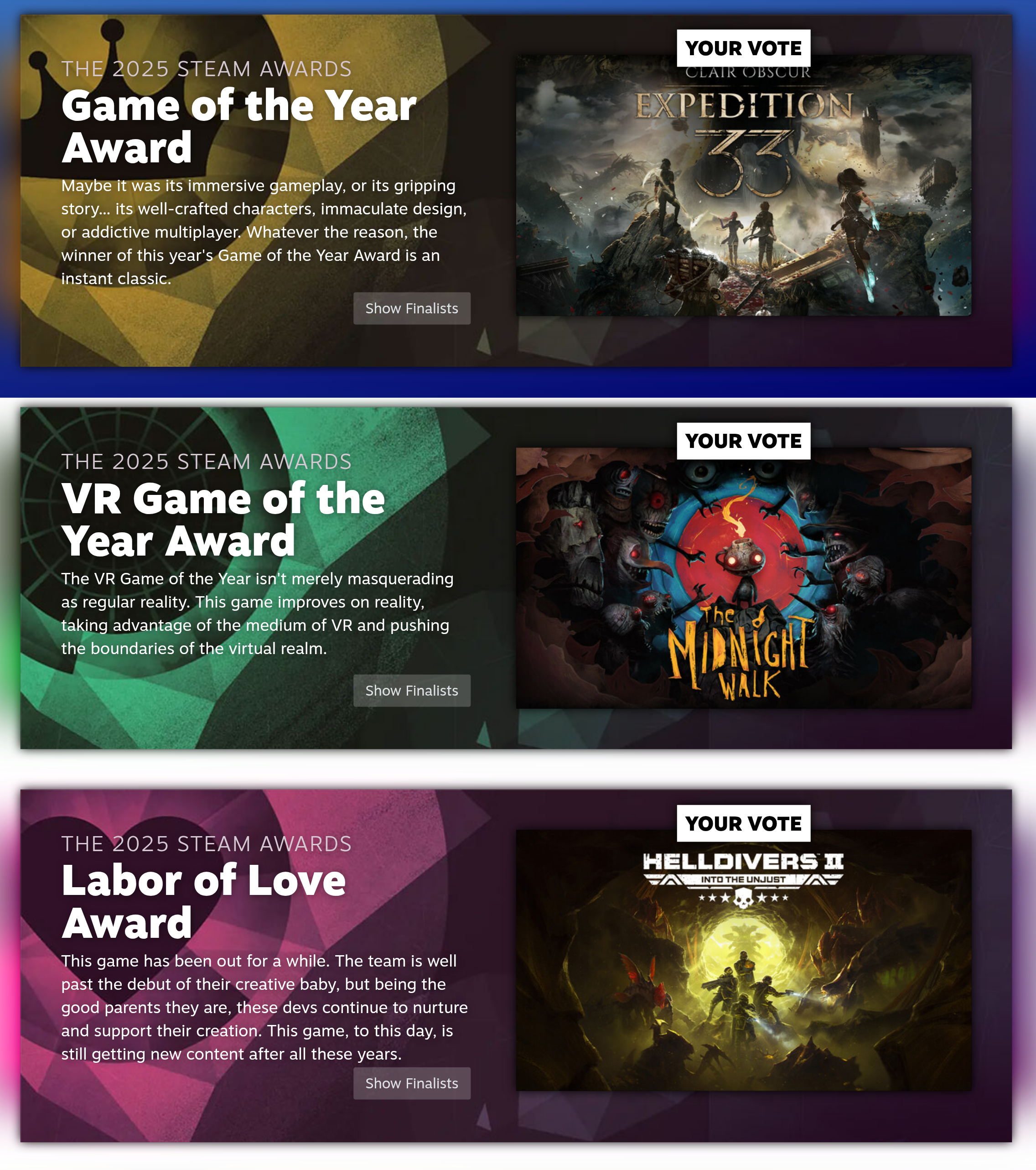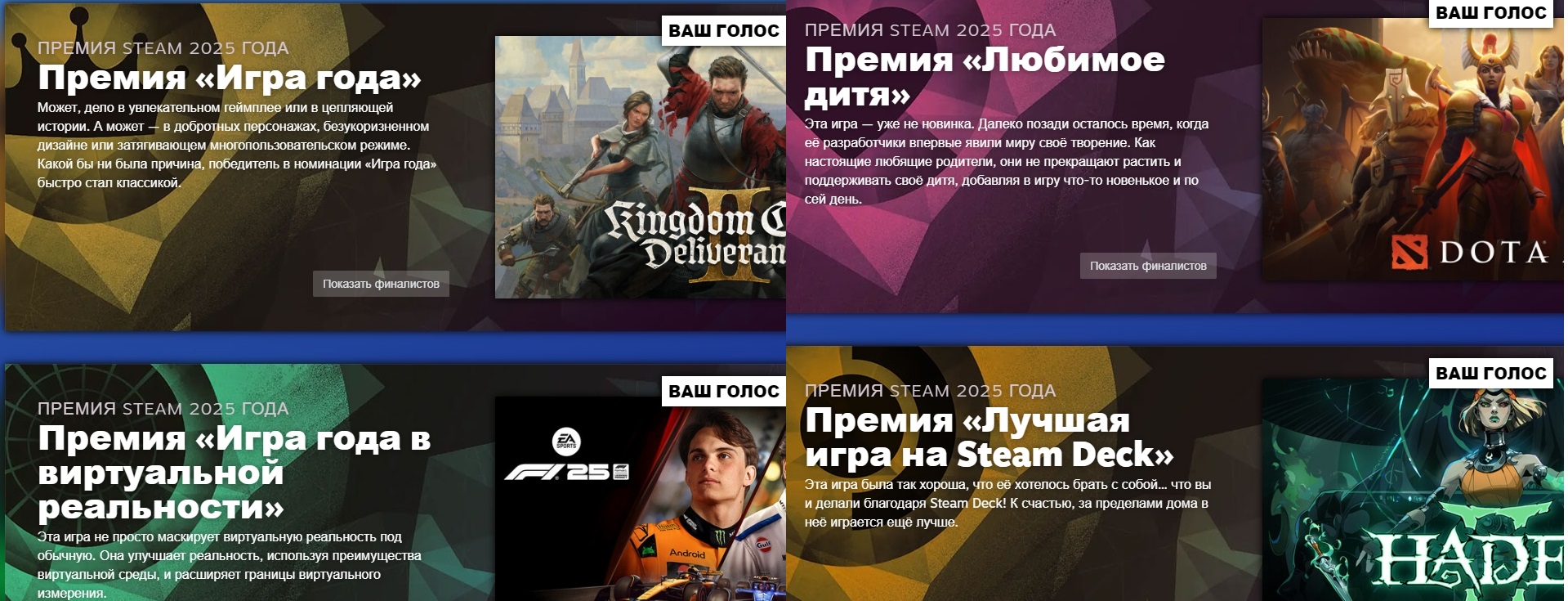 Началось пользовательское голосование за премию The Steam Awards 2025
