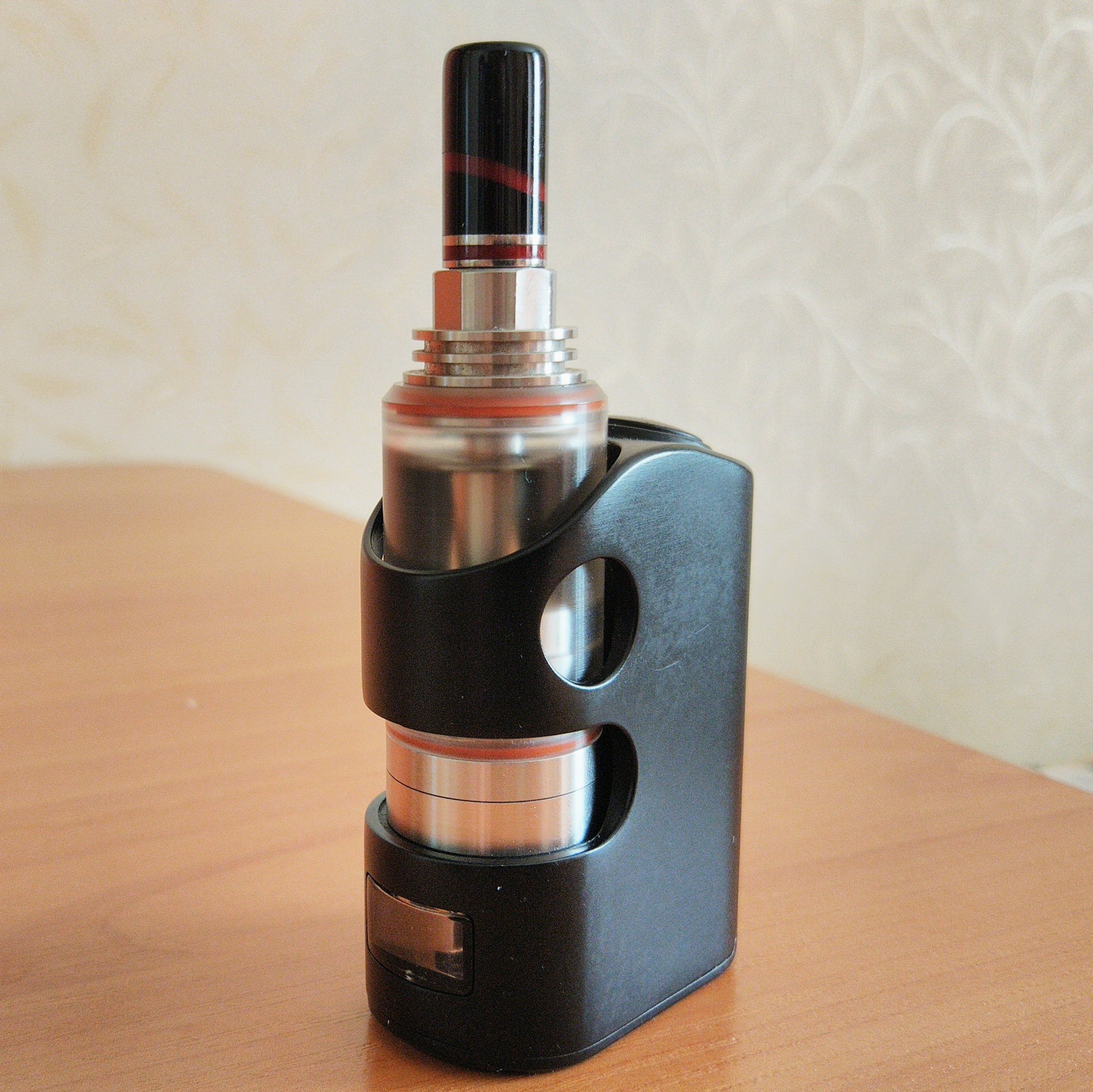 Атомайзер пиздец вкусный, но сука он сам размером с боксмод. Но как-то похуй, в руке лежит аккуратно, если зажать в ладони то торчит только дриптип.